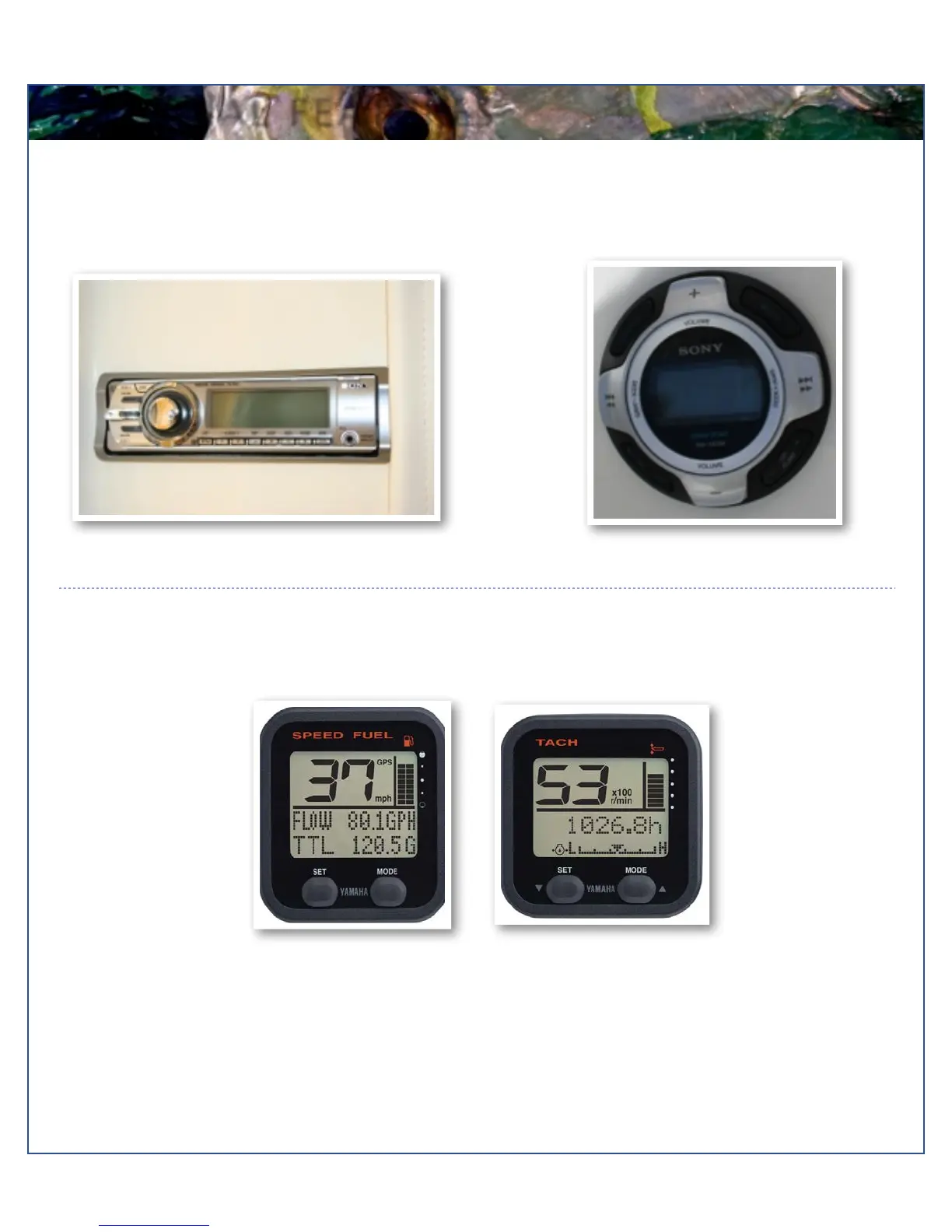 console on the aft bulkhead. This option comes with a stereo remote mounted on the face of the console, right of the helm,