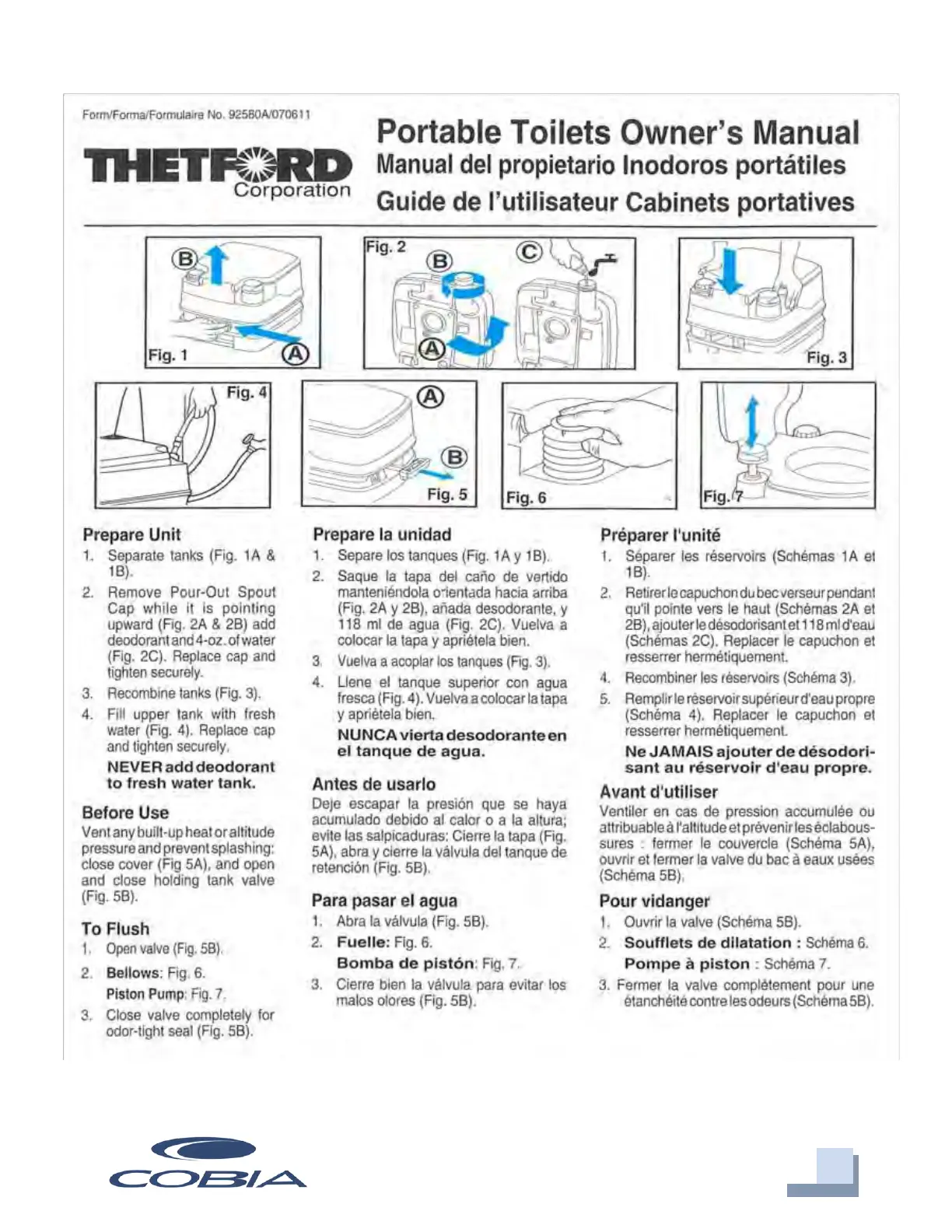 COBIA 240 CC - Portable Toilet Operation; Preparing the Toilet Unit; Using and Maintaining the Toilet