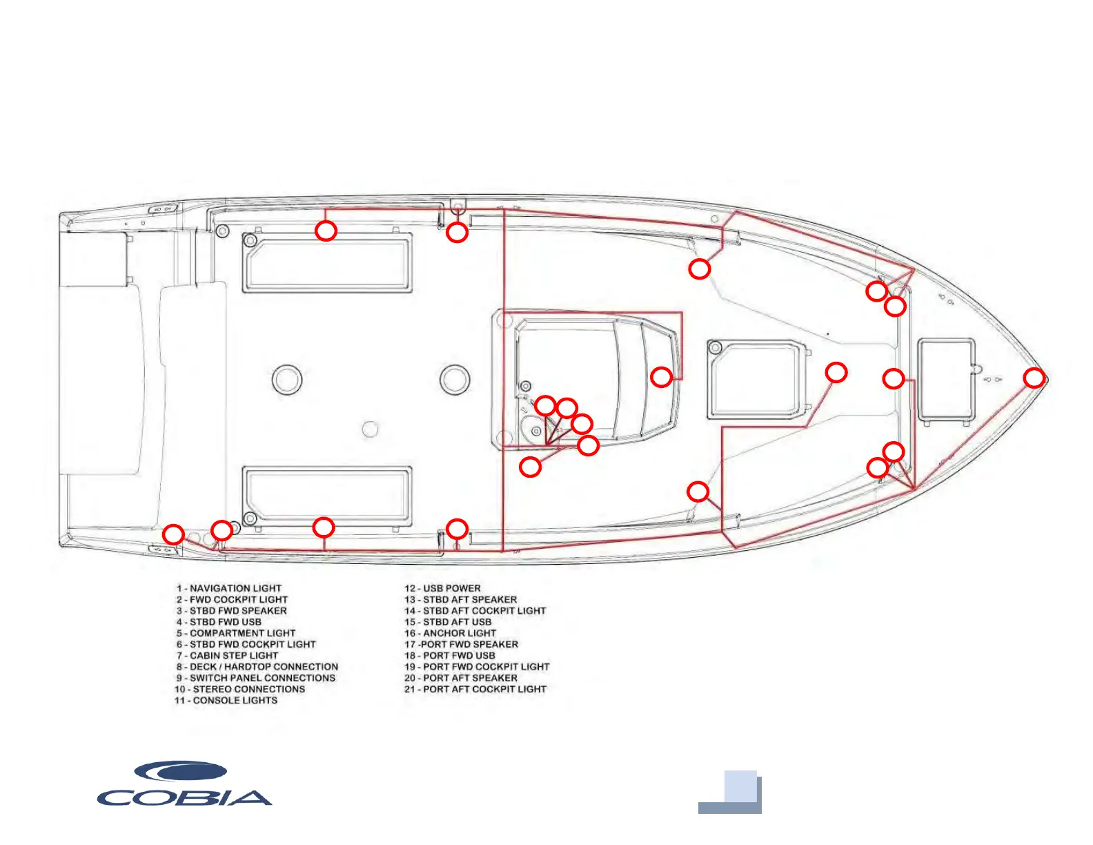 COBIA 240 CC - Deck Wire Harness Diagram; Deck Wiring Components
