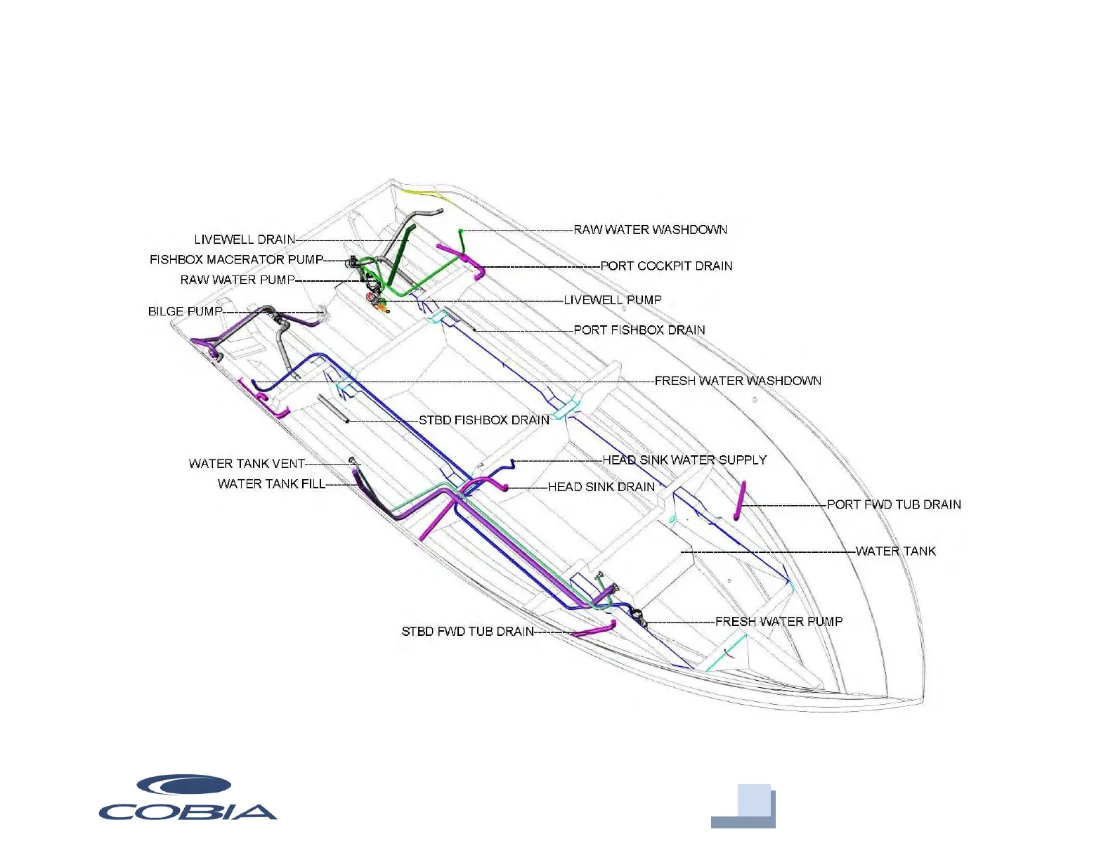 COBIA 240 CC - Water Drain System Diagram; Water Drain System Components