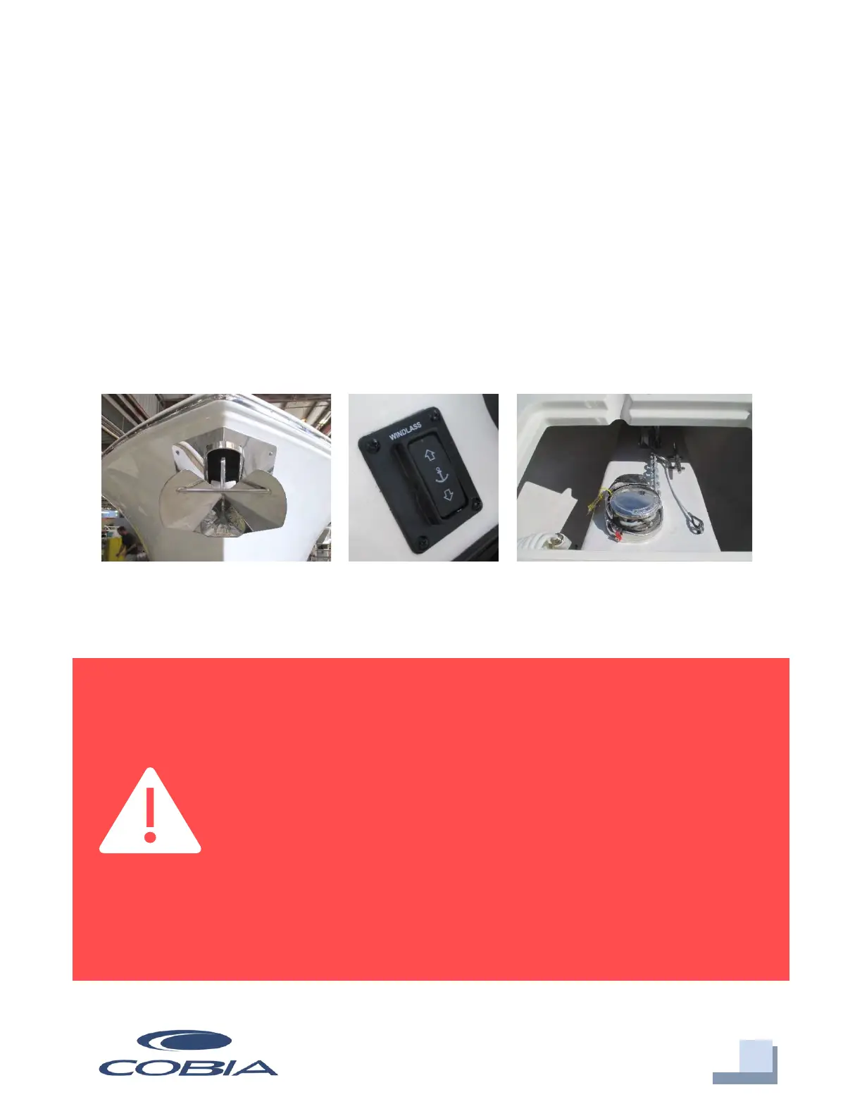 DO NOT USE THE WINDLASS TO DRAG THE BOAT TO YOUR ANCHOR. THE