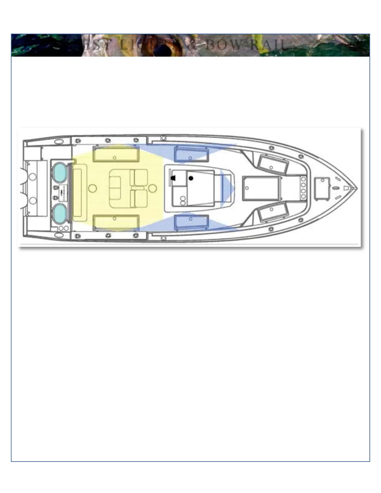 The cockpit comes equipped with five lights; three installed beneath the port and starboard gunnel boards, two on each side