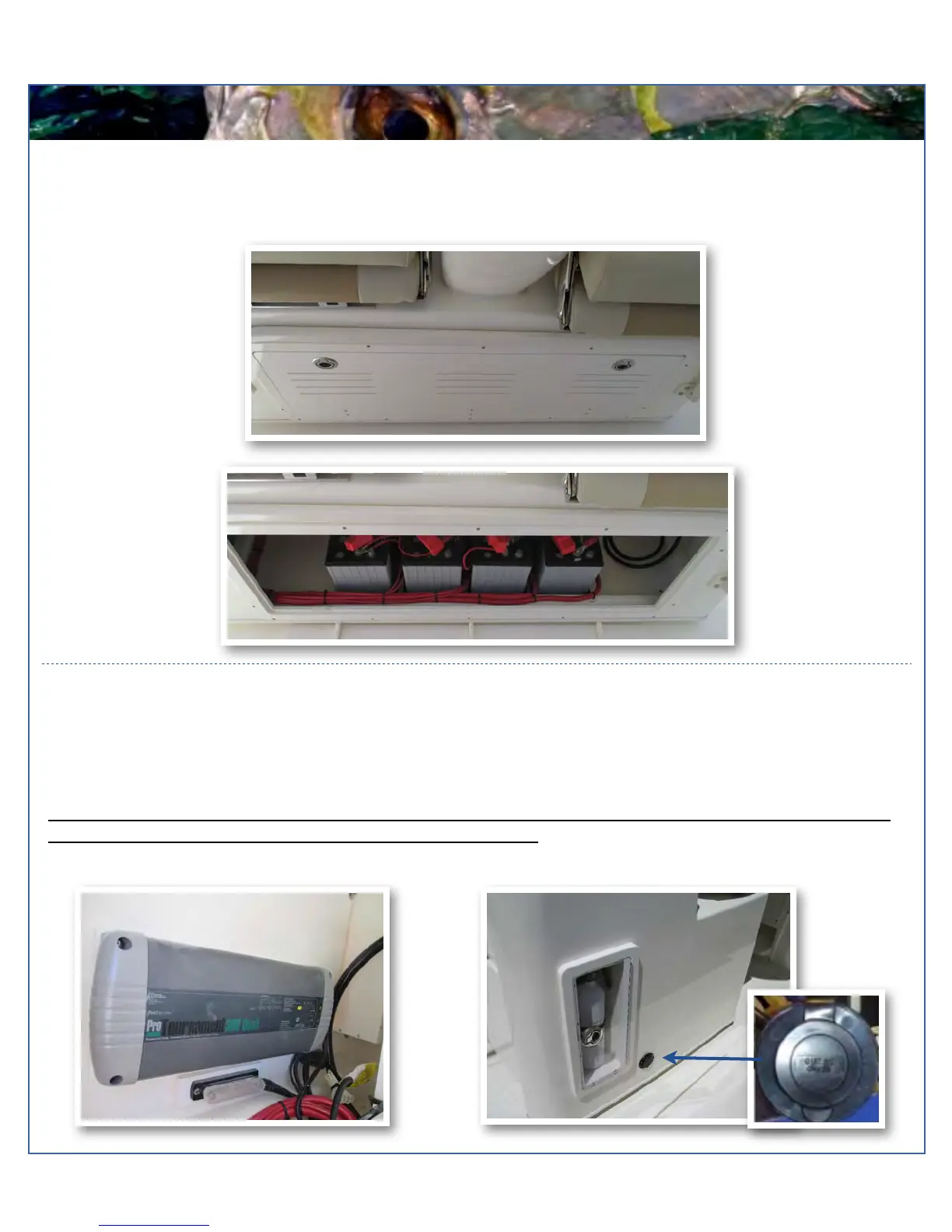 can be accessed through the hatch on the forward side of the leaning post. There is a receptacle to plug a 110v cord into.