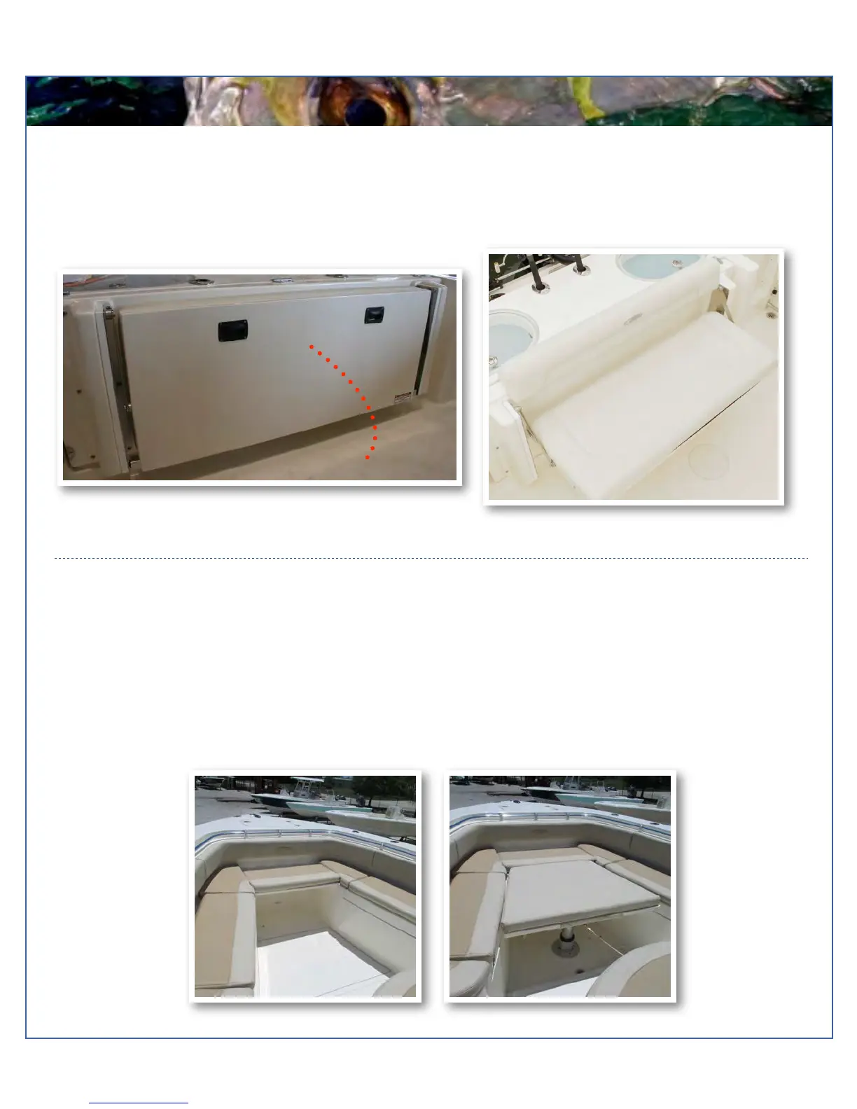 retractable bow table to turn the whole bow portion into a sun lounge. These cushion bottoms are removable and are held