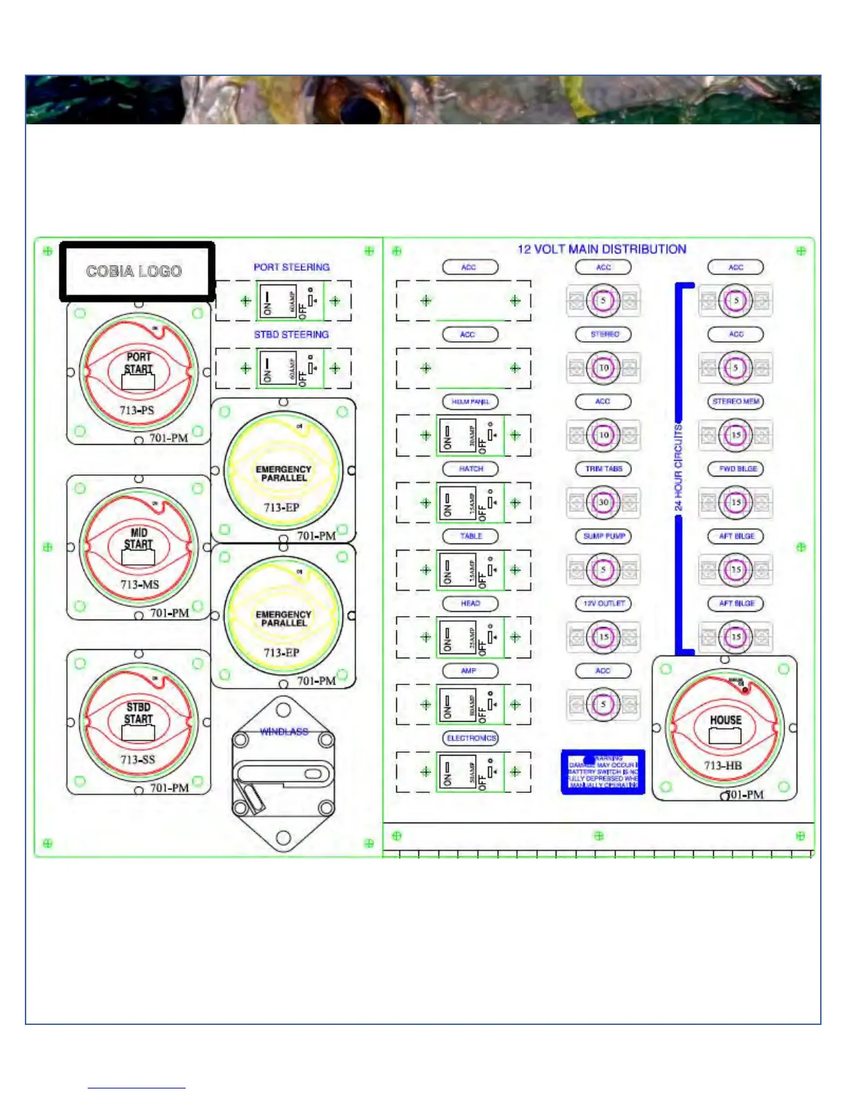 COBIA 344 CC - Battery and Breaker Panel (Trips); Circuit Breaker Layout (Trips)