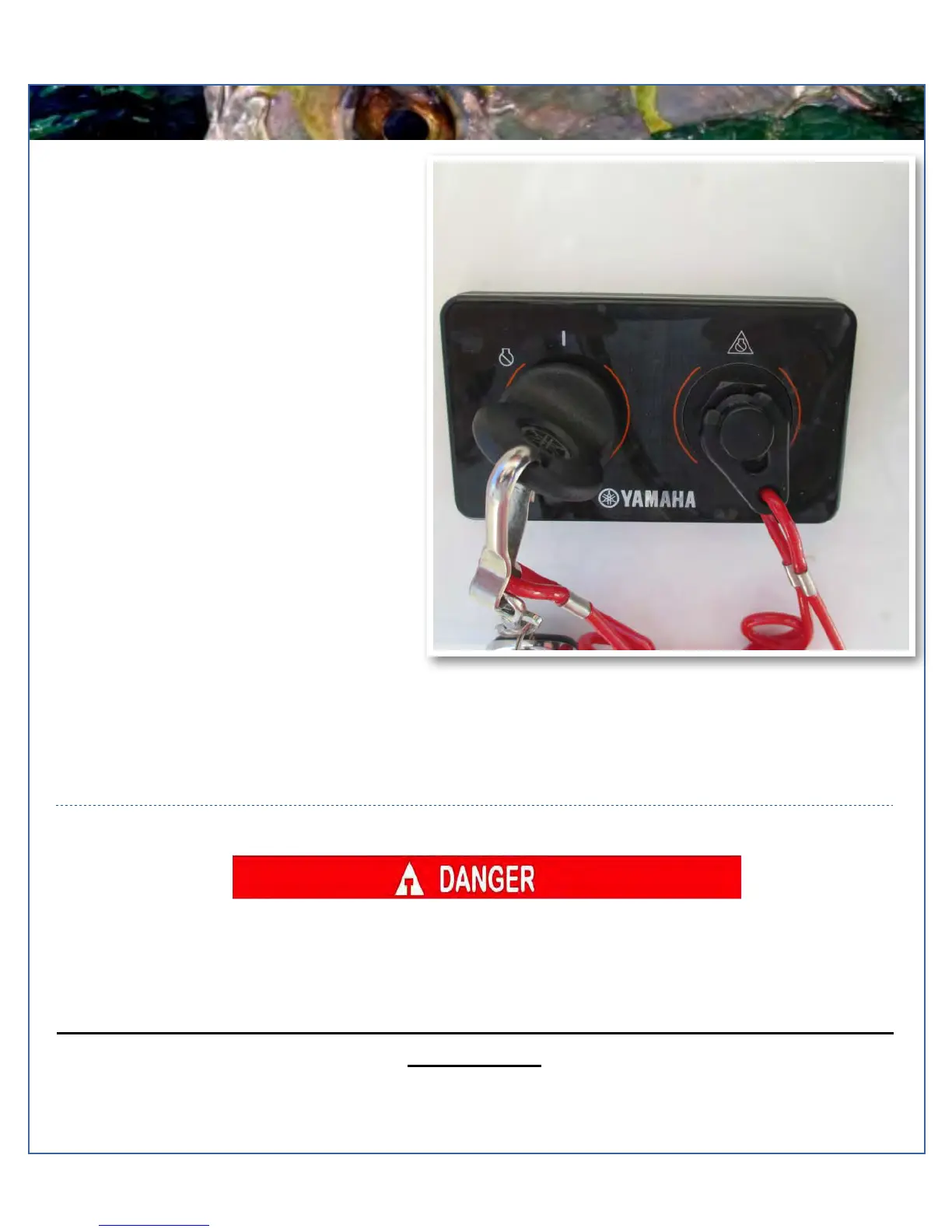 DO NOT operate the boat if the engine stop switch system does not function properly. Go to a Cobia Dealer to