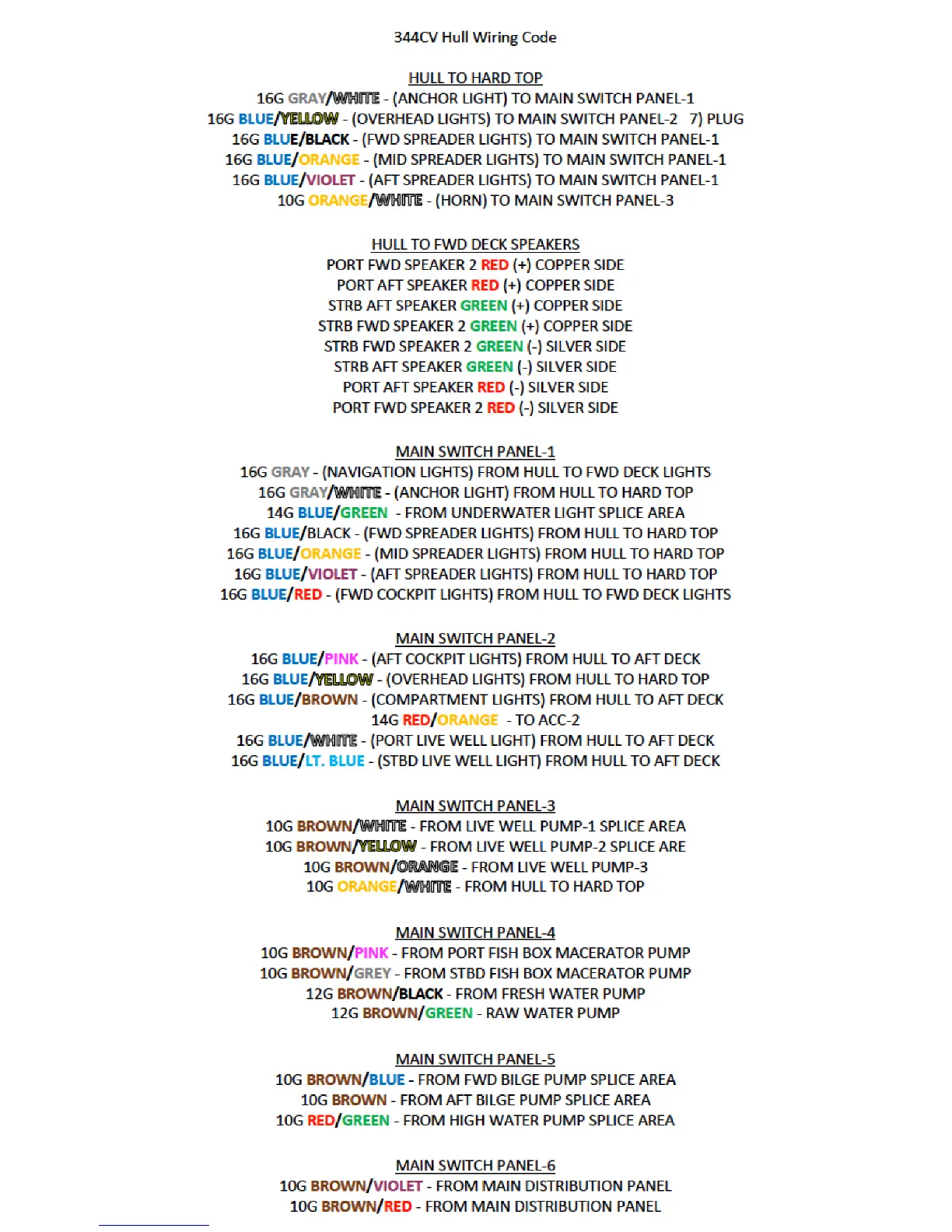COBIA 344 CC - Hull Wiring Codes - Hard Top; Hard Top Wiring Connections