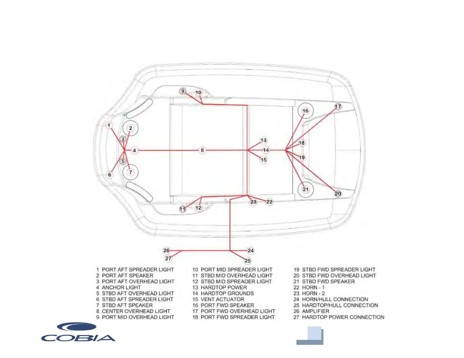 COBIA 350 CC - Hardtop Wire Harness Diagram; Hardtop Wiring Layout