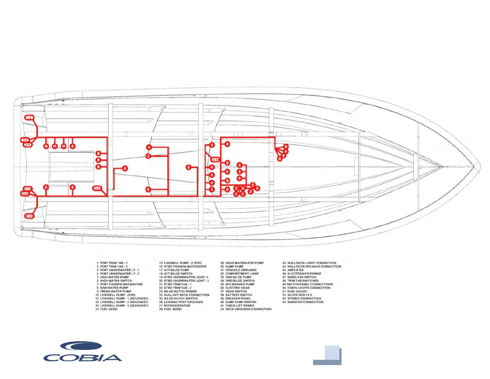 COBIA 350 CC - Hull Wire Harness Diagram; Hull Wiring Layout