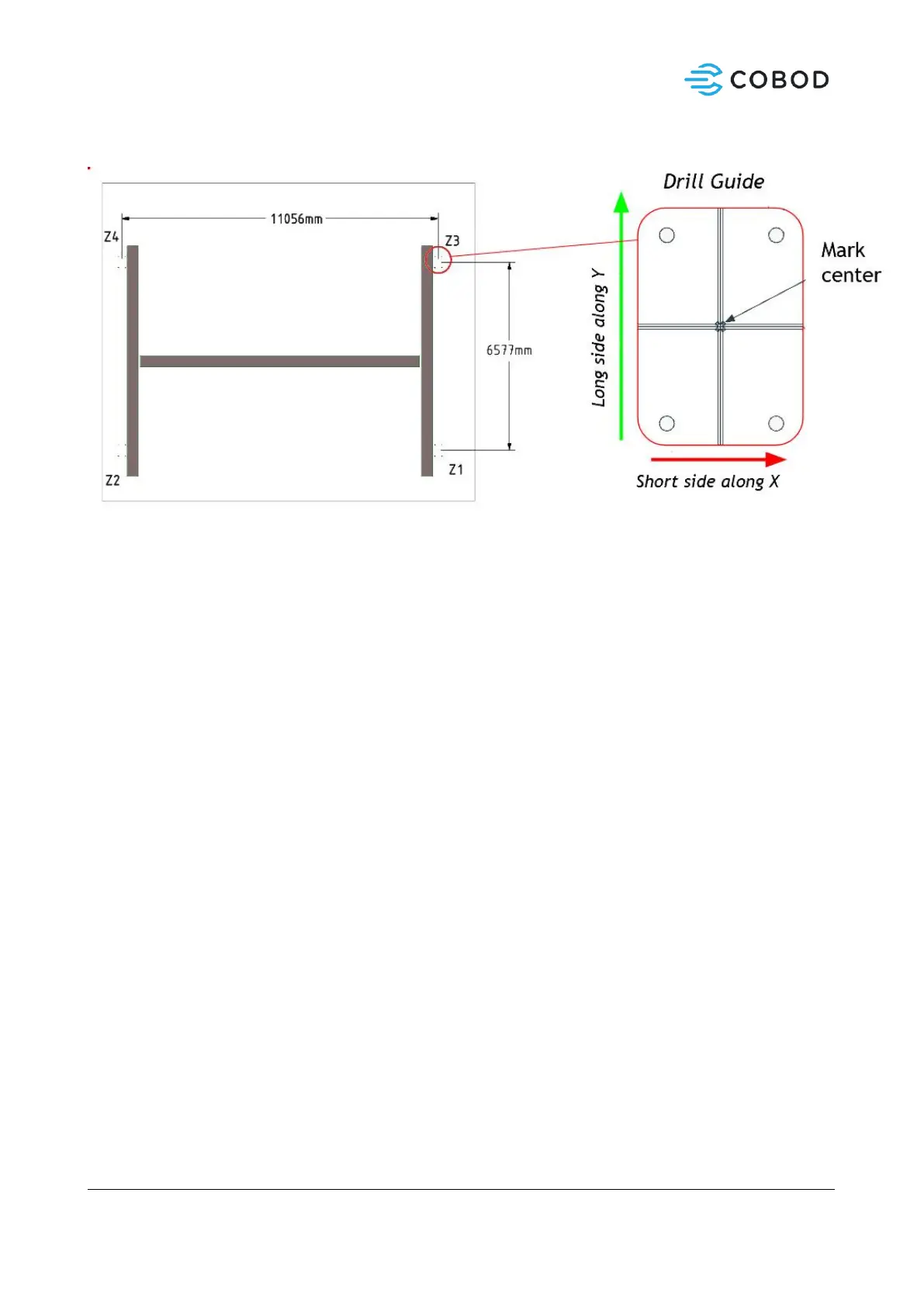 9. Drill marked anchor holes with M8 drill. Make sure the holes are vertical.