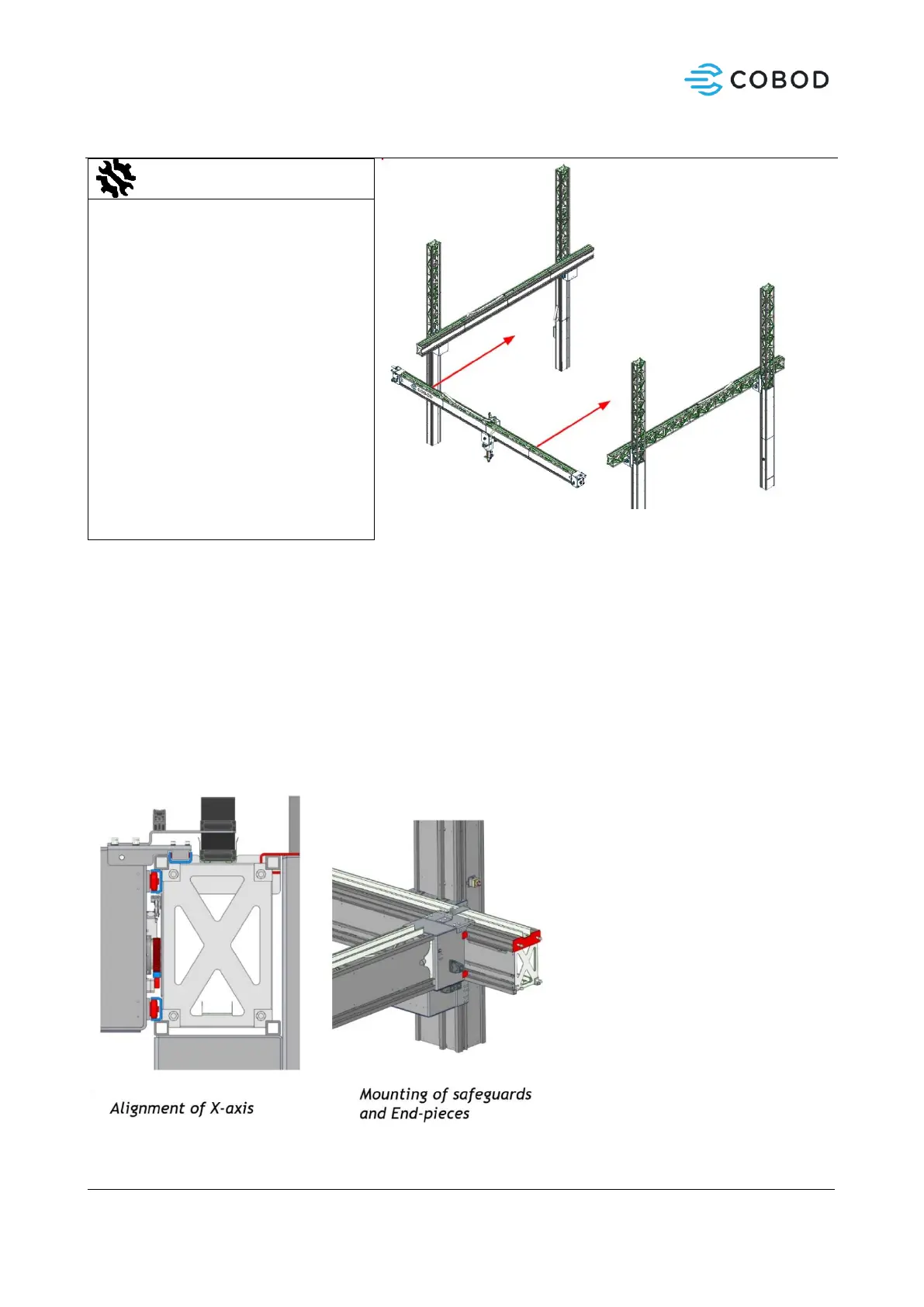 5. Push the entire X-axis into the middle of the Y-axis before you loosen the crane straps.