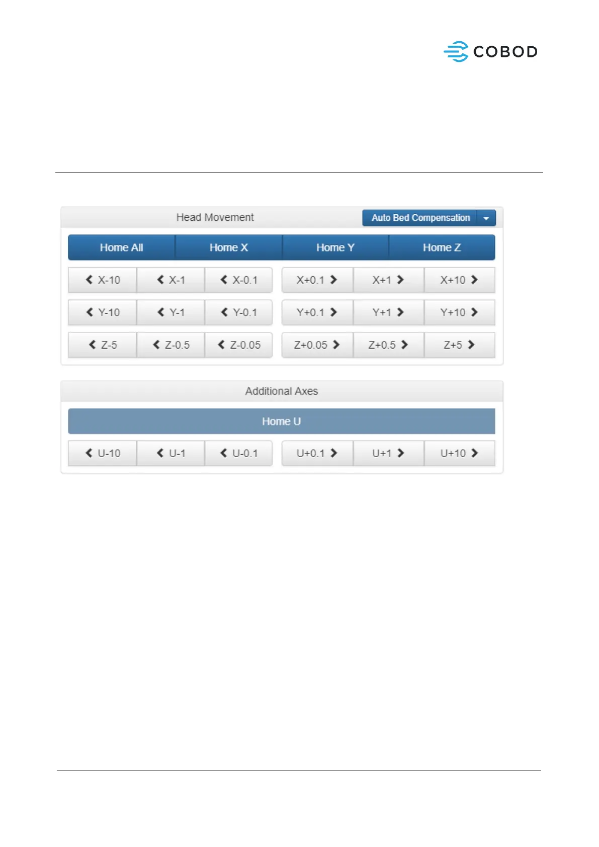 The print head and axes can be moved manually using the buttons under the “machine control” panel in