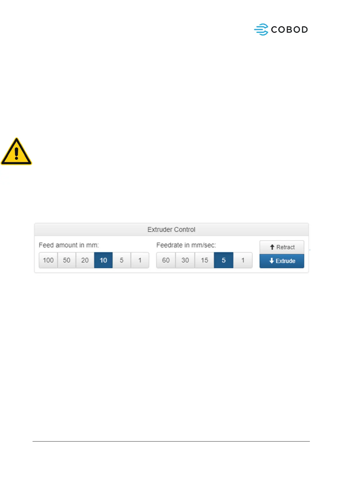 TO AVOID DAMAGE TO THE EXTRUDER PUMP, NEVER RUN THE EXTRUDER IN A DRY STATE I.E. WITHOUT