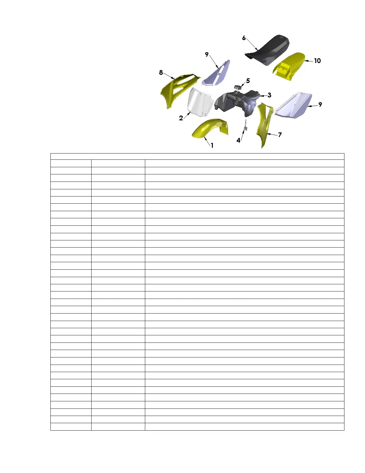 10 TCCS0005x REAR FENDER, x – DENOTES COLOR BLK, WHT, YEL, FLL