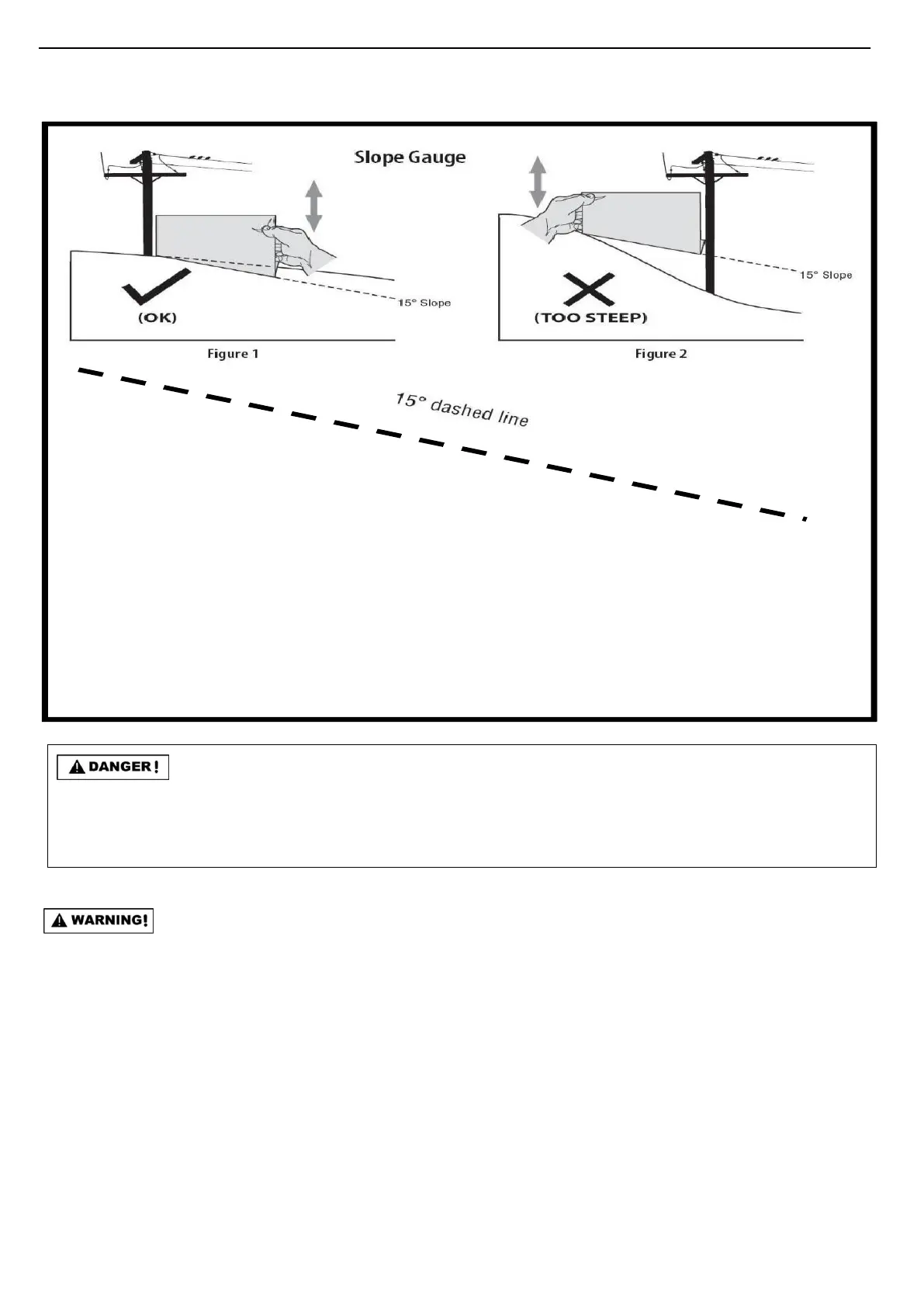 If there is a gap below the gauge, the slope is too steep for safe operation (see Figure 2 above)