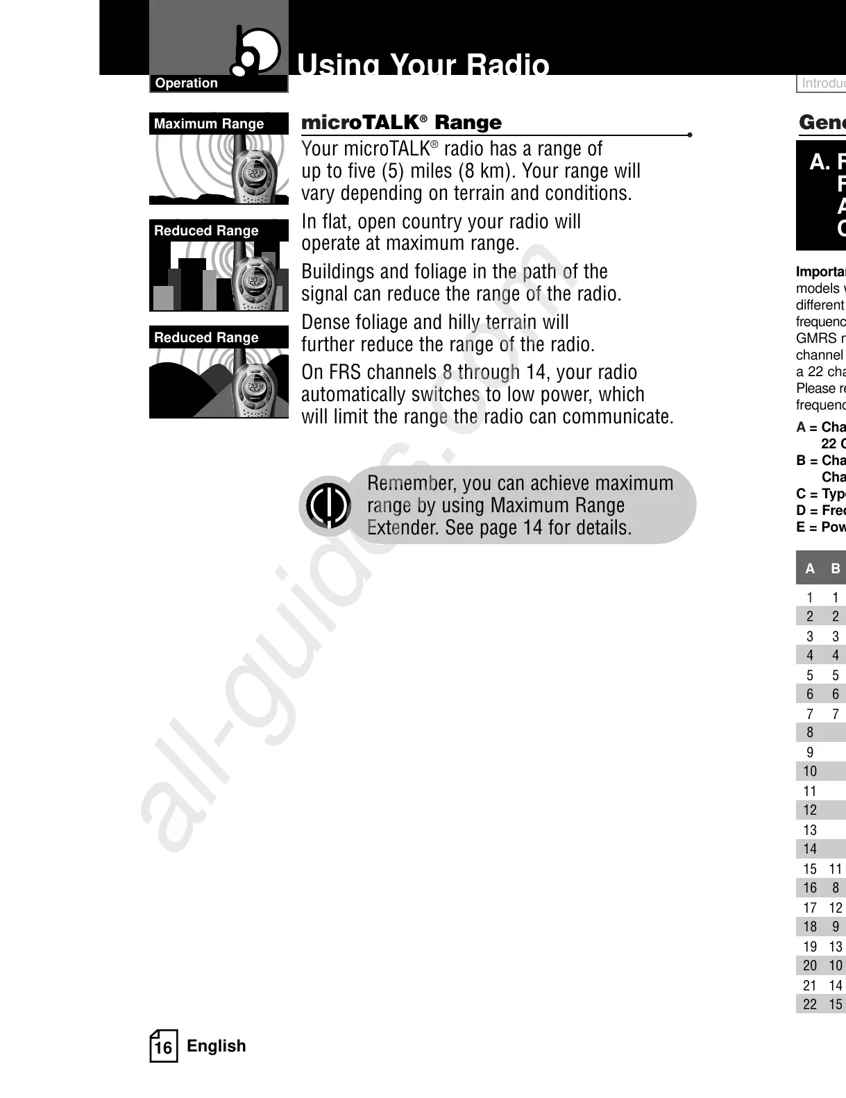 FRS Only . . . . . . . . . . . . . . . . .mW 500