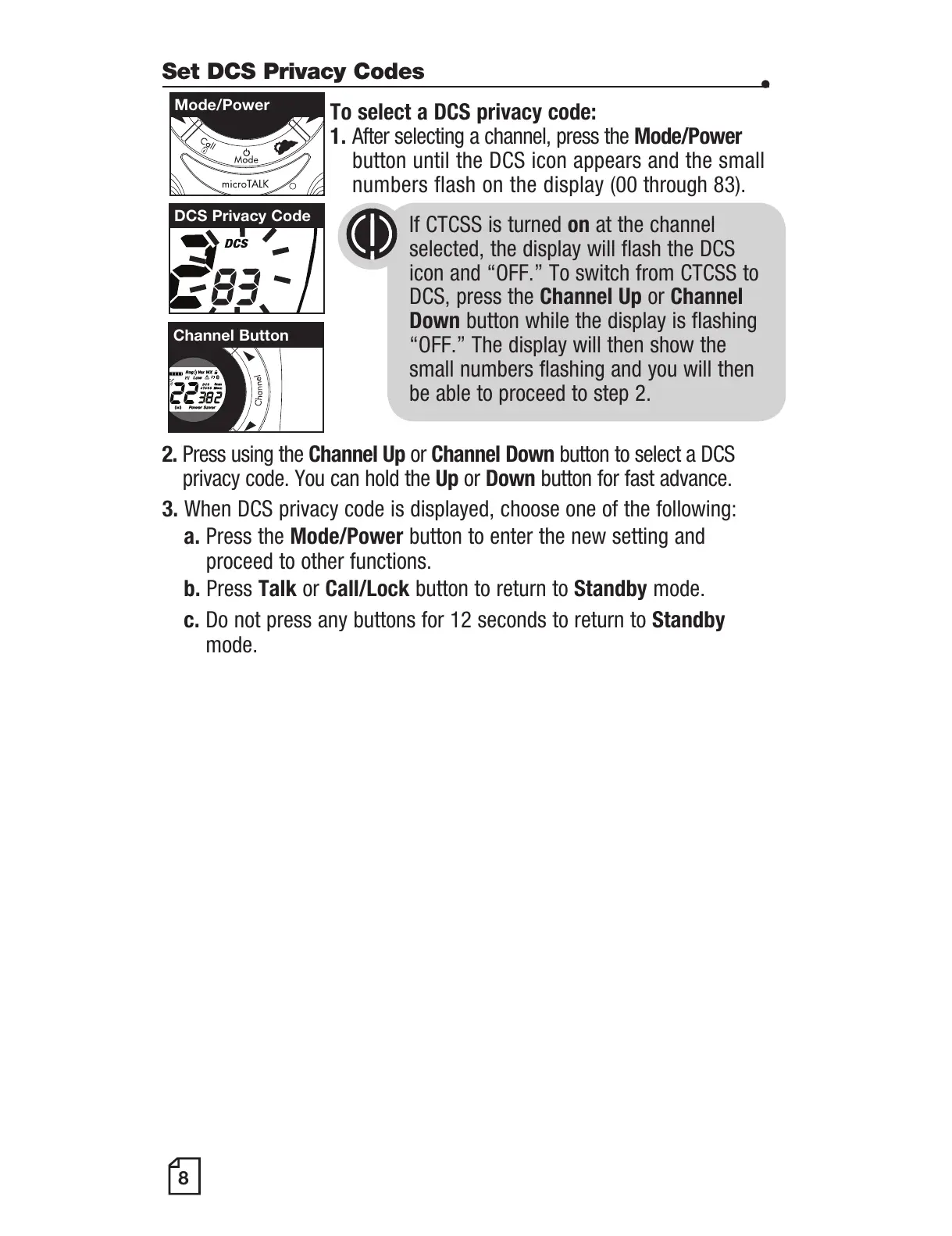 2. Press using the Channel Up or Channel Down button to select a DCS