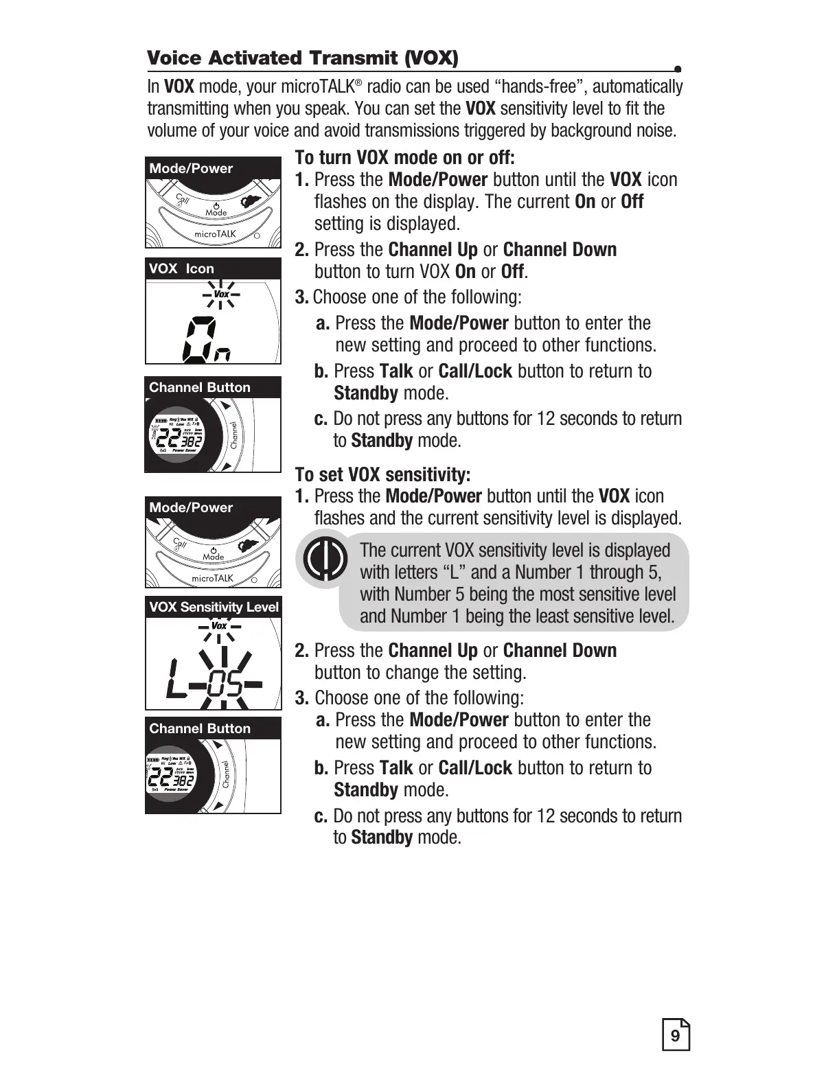 transmitting when you speak. You can set the VOX sensitivity level to fit the