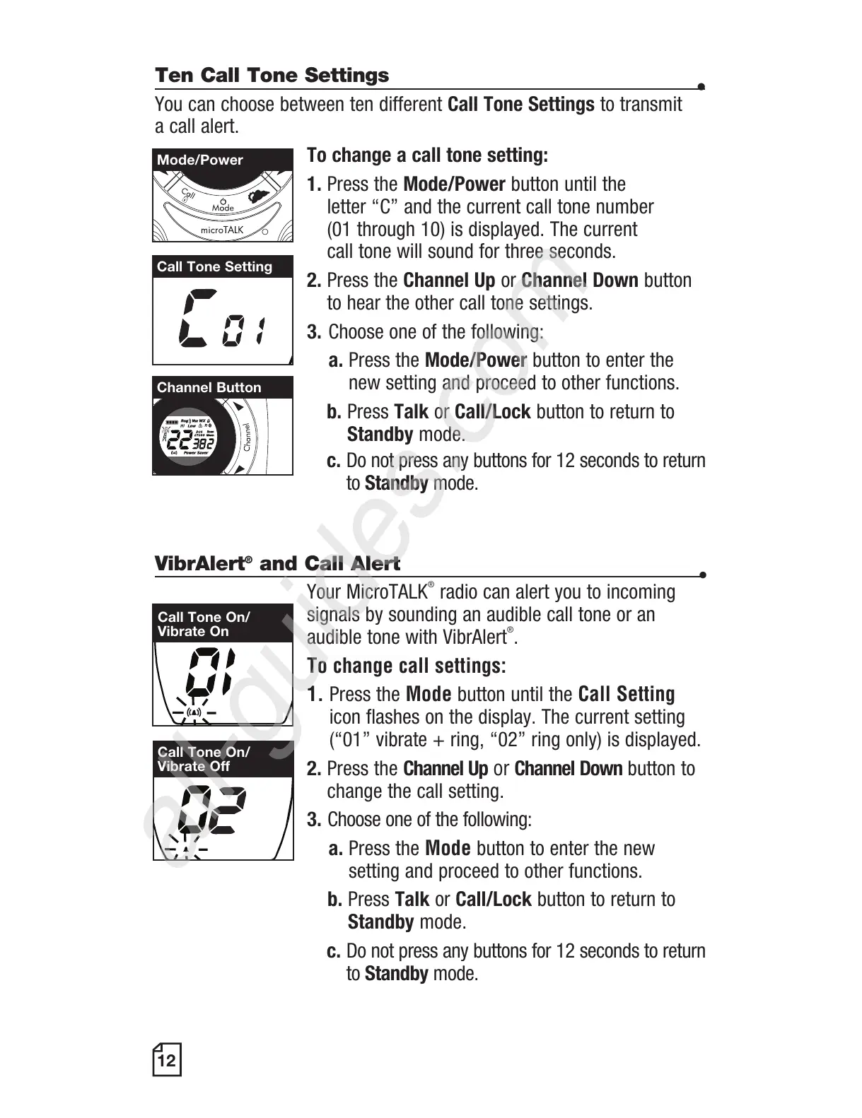You can choose between ten different Call Tone Settings to transmit