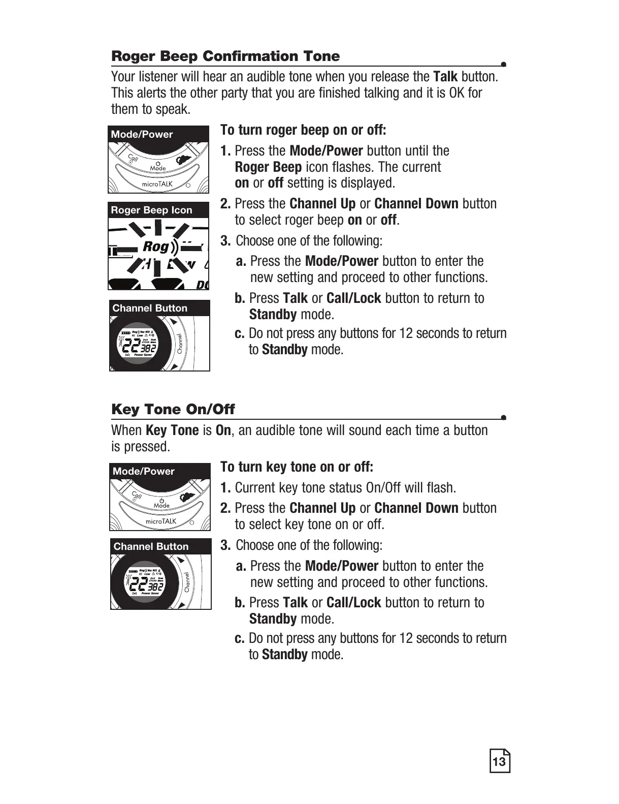 When Key Tone is On, an audible tone will sound each time a button