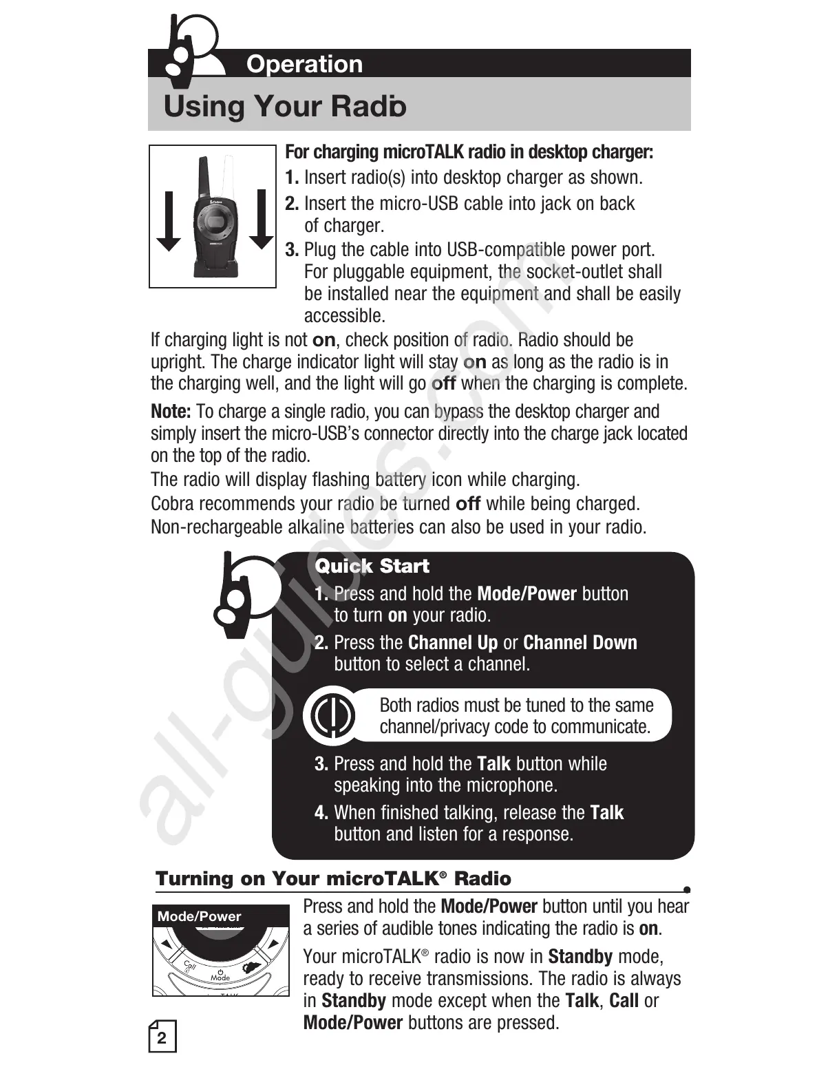 For charging microTALK radio in desktop charger: