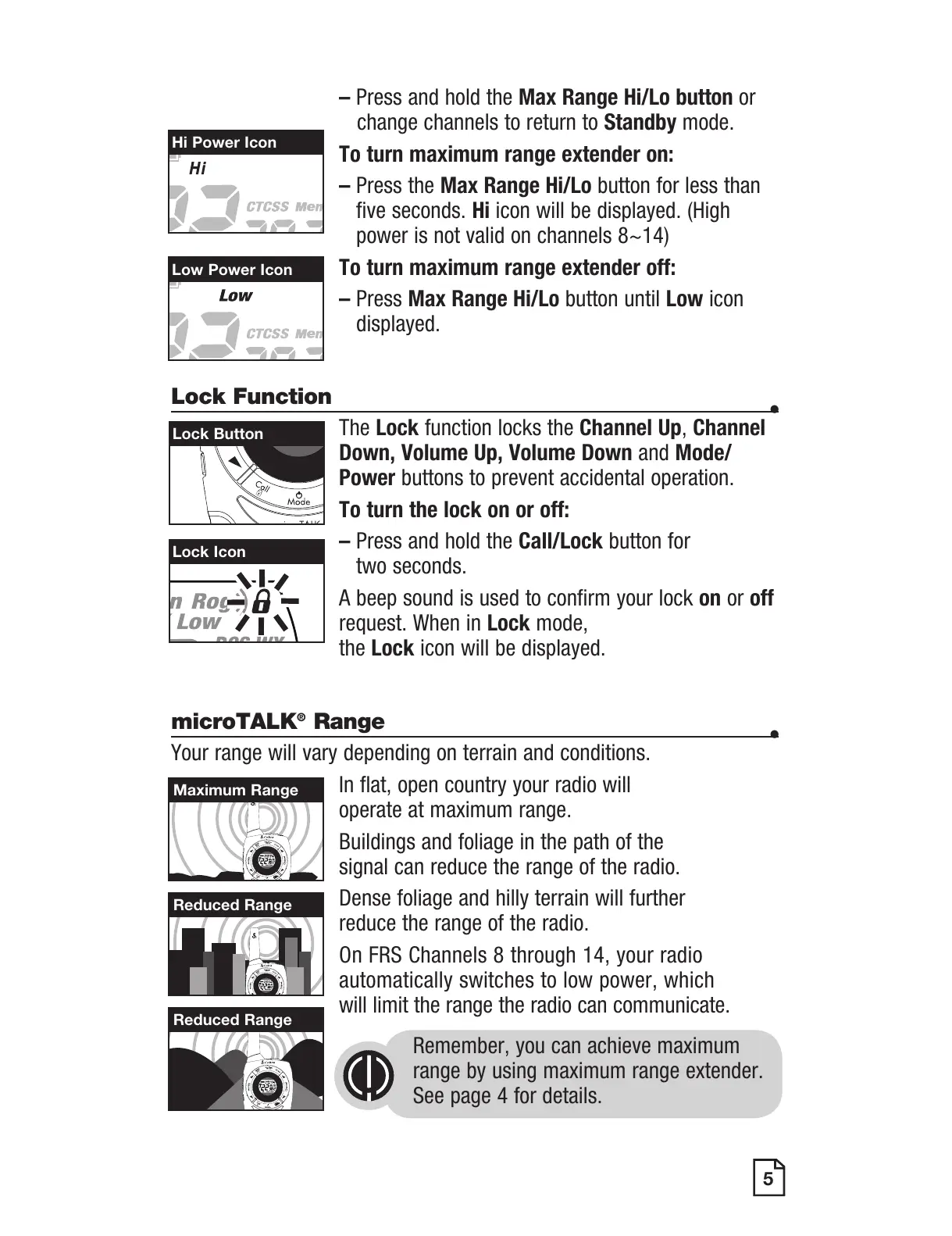 – Press Max Range Hi/Lo button until Low icon