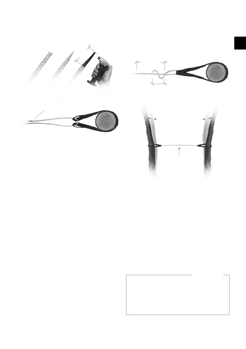 šikmo podél vlákna (úhel = 15º). Na konec lana