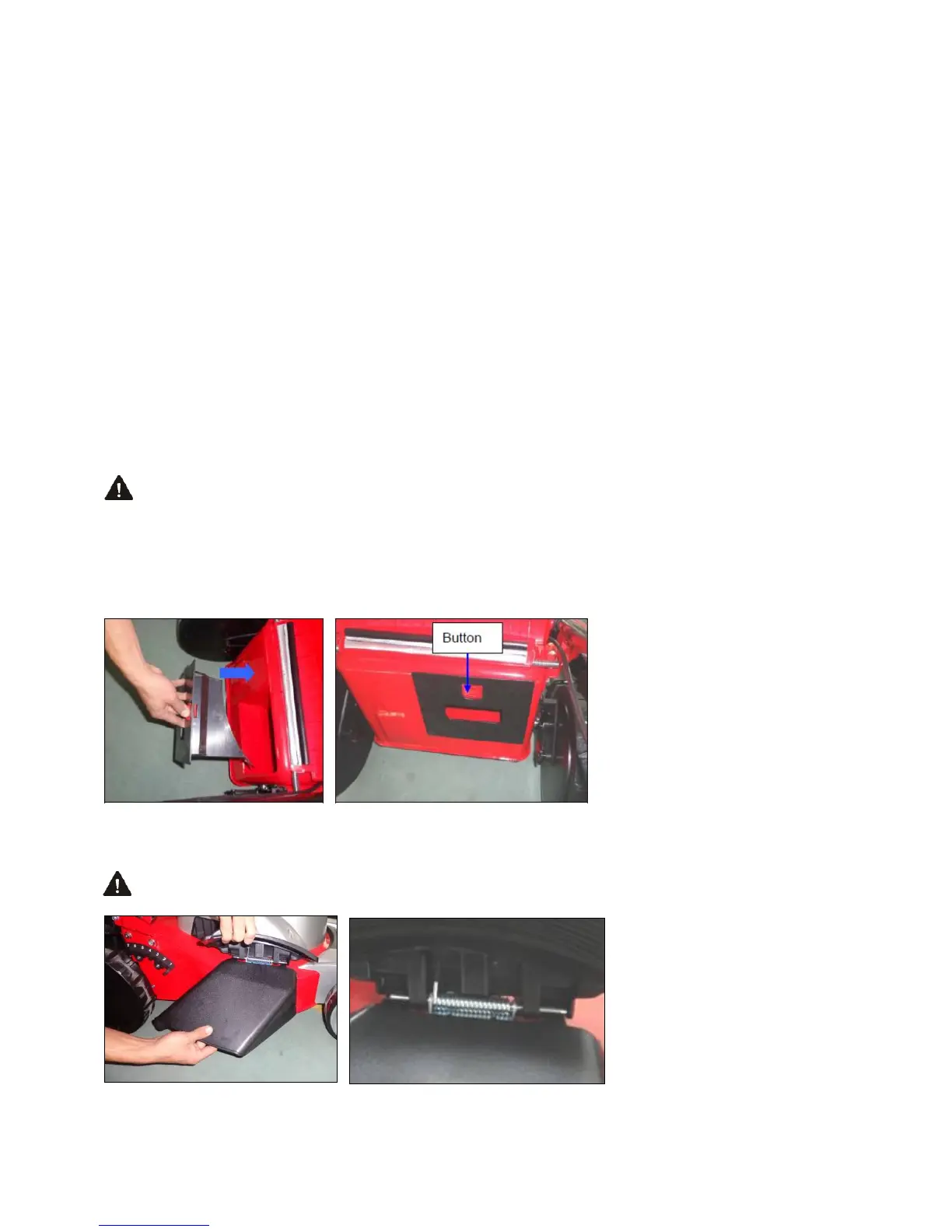 2. Push the mulching wedge into the deck. Lock the mulching wedge with the button into the opening on the