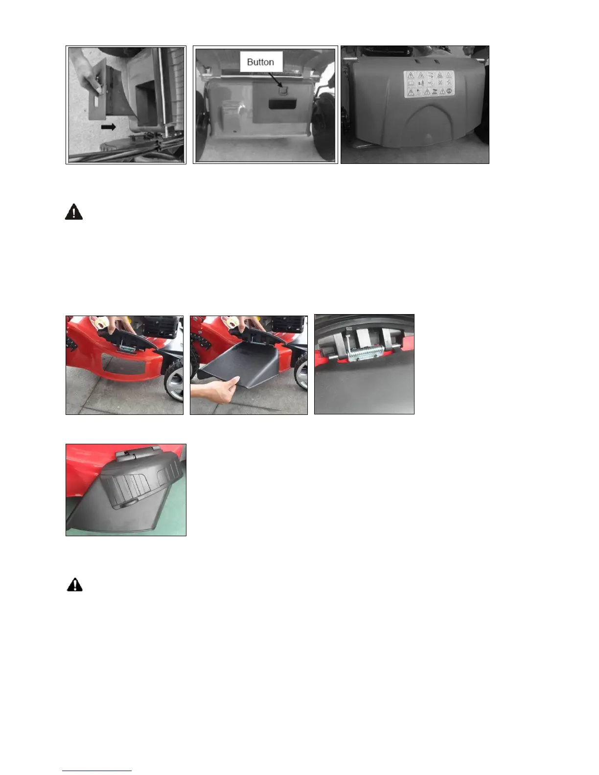 For mowing with the grass catcher, remove the mulching wedge and discharge channel for side discharge and mount the grass