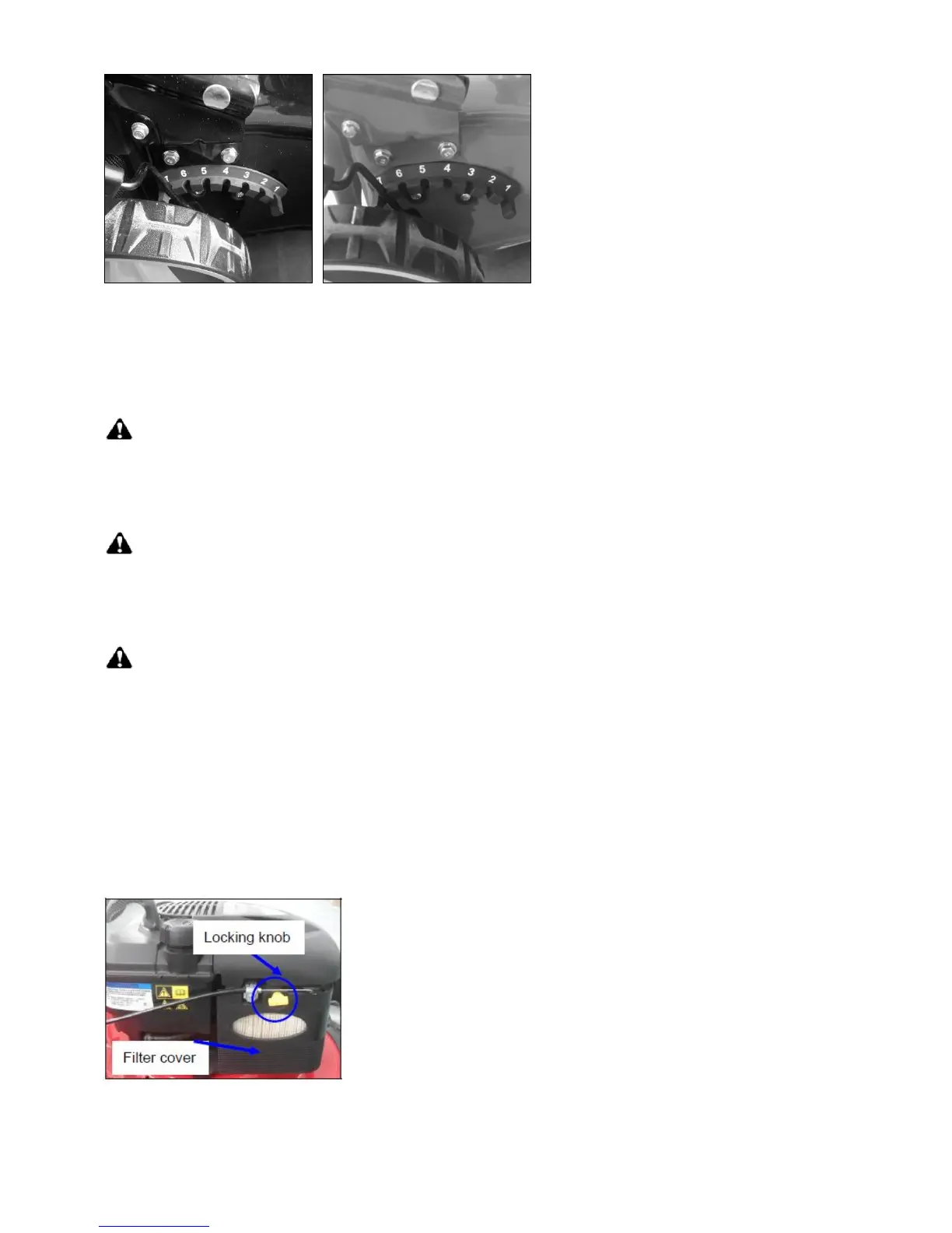 (cleaned) after 25 hours normal mowing. The foam element must be serviced more regularly if the mower is used in dry dusty