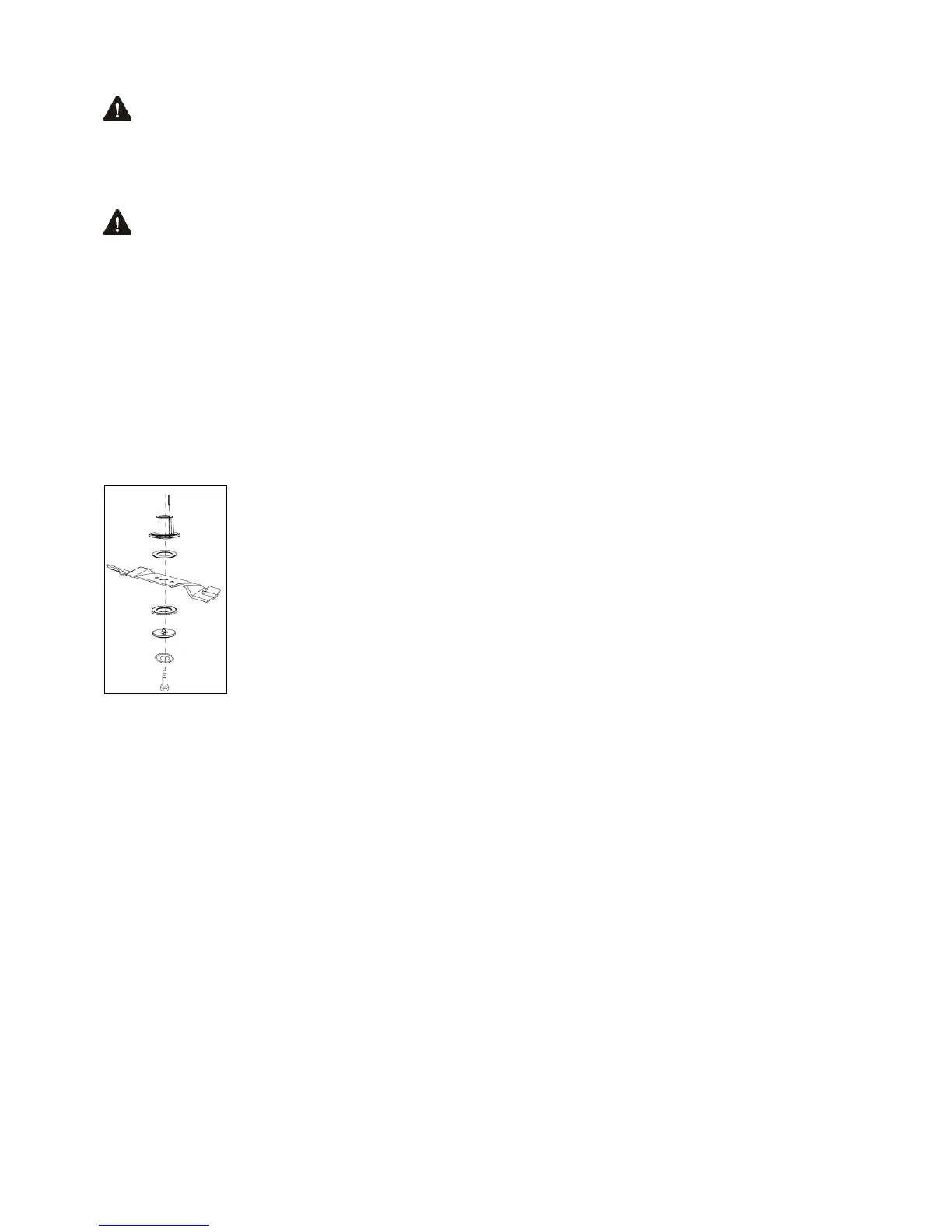 engine manual. Remove the hex bolt and washer which hold the blade and blade adapter to the engine crankshaft. Remove the
