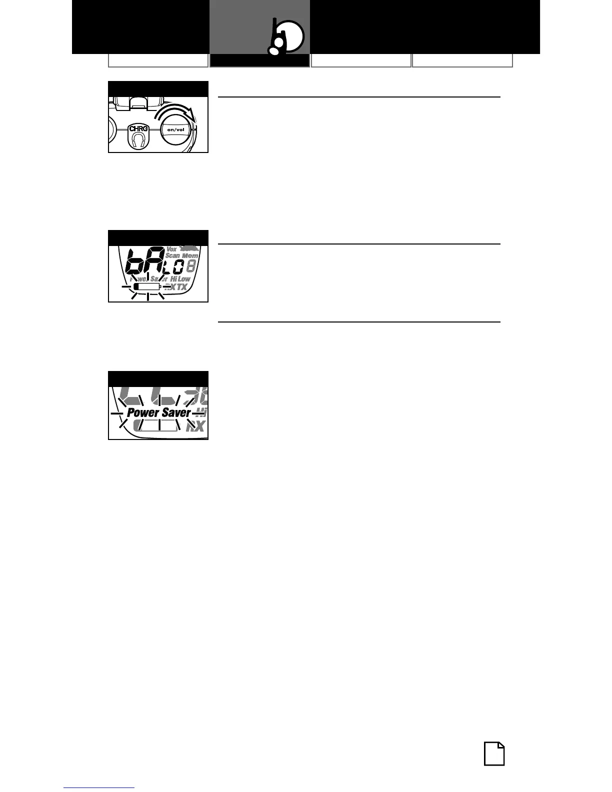 A series of tones will indicate the radio is on.