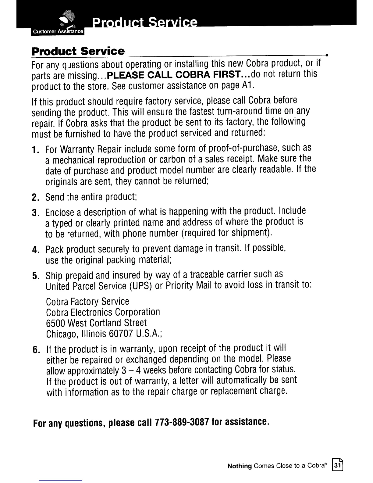 ...PLEASE CALL COBRA FIRST...