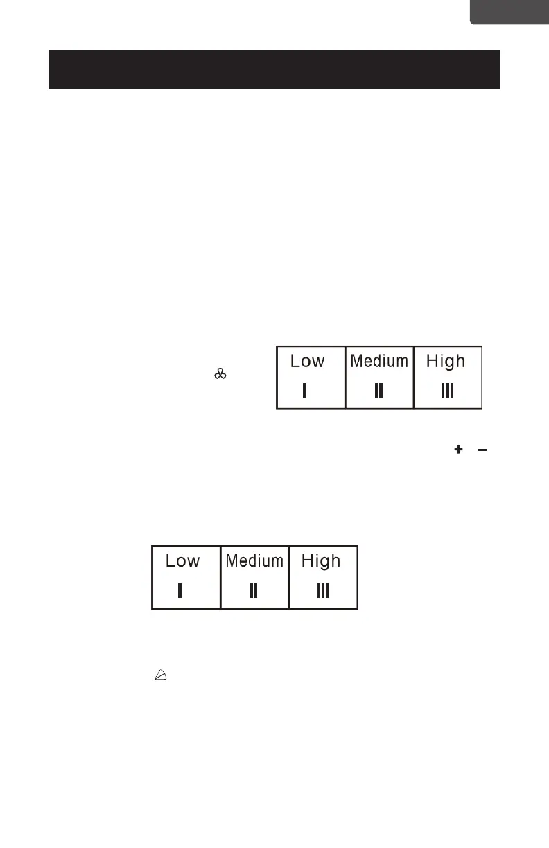 • Press the speed button to select HIGH, MEDIUM or LOW fan speed.
