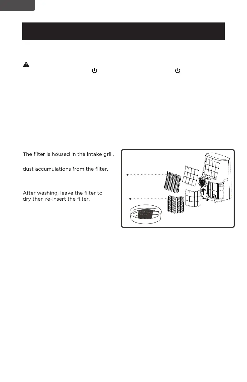Clean the lter and dry thoroughly before reinstalling.
