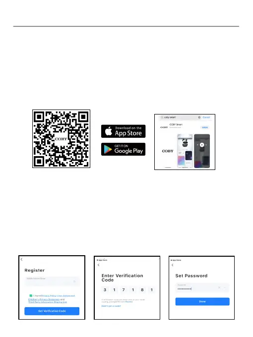 phone camera and tapping the pop-up link, or search for "COBY Smart" in