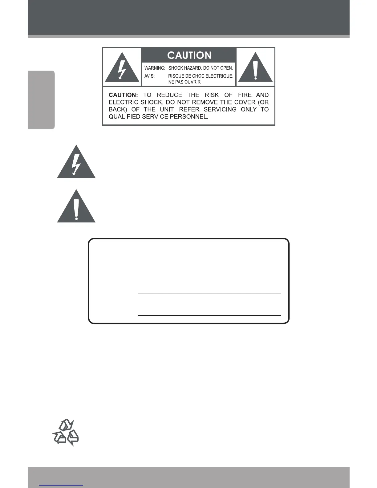 WARNING: To prevent re or shock hazard, do not expose this device to rain or moisture.