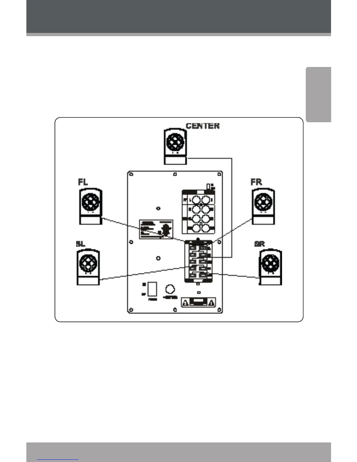 of the subwoofer (FL= Front Left; FR = Front Right; SL =