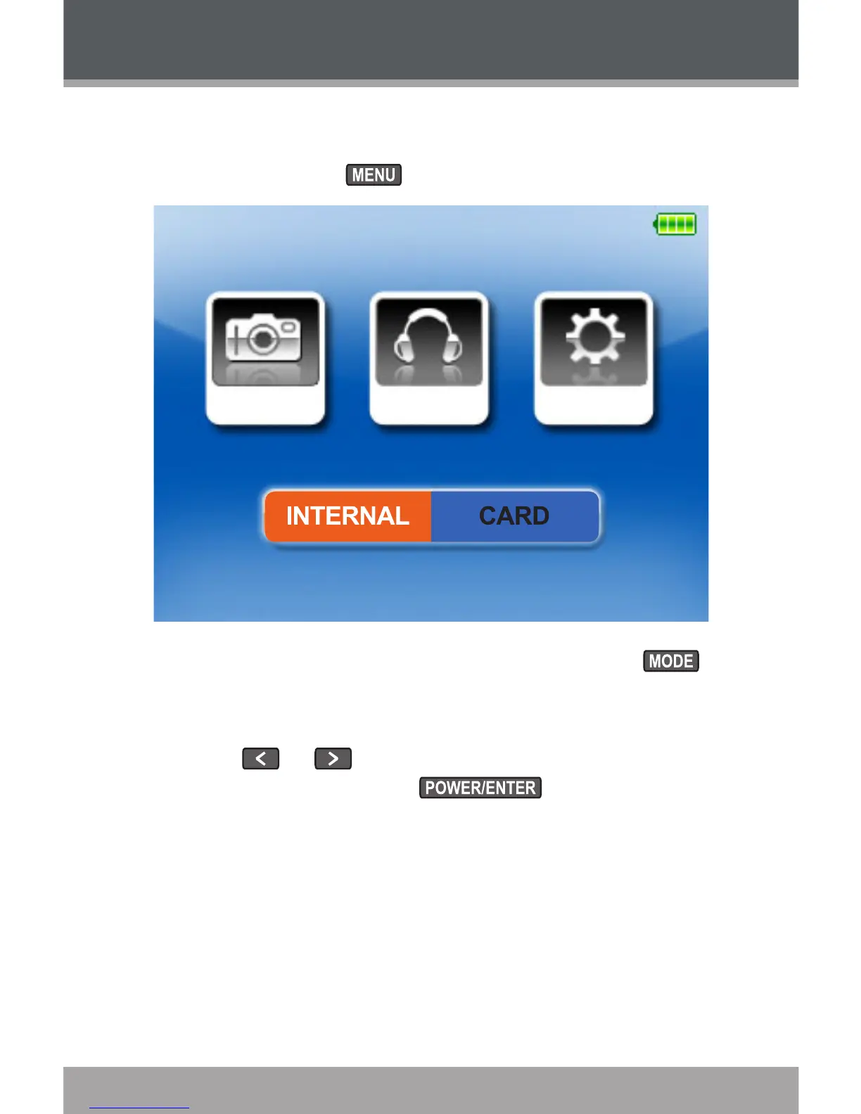 Press or to select a mode (Photo, Music,