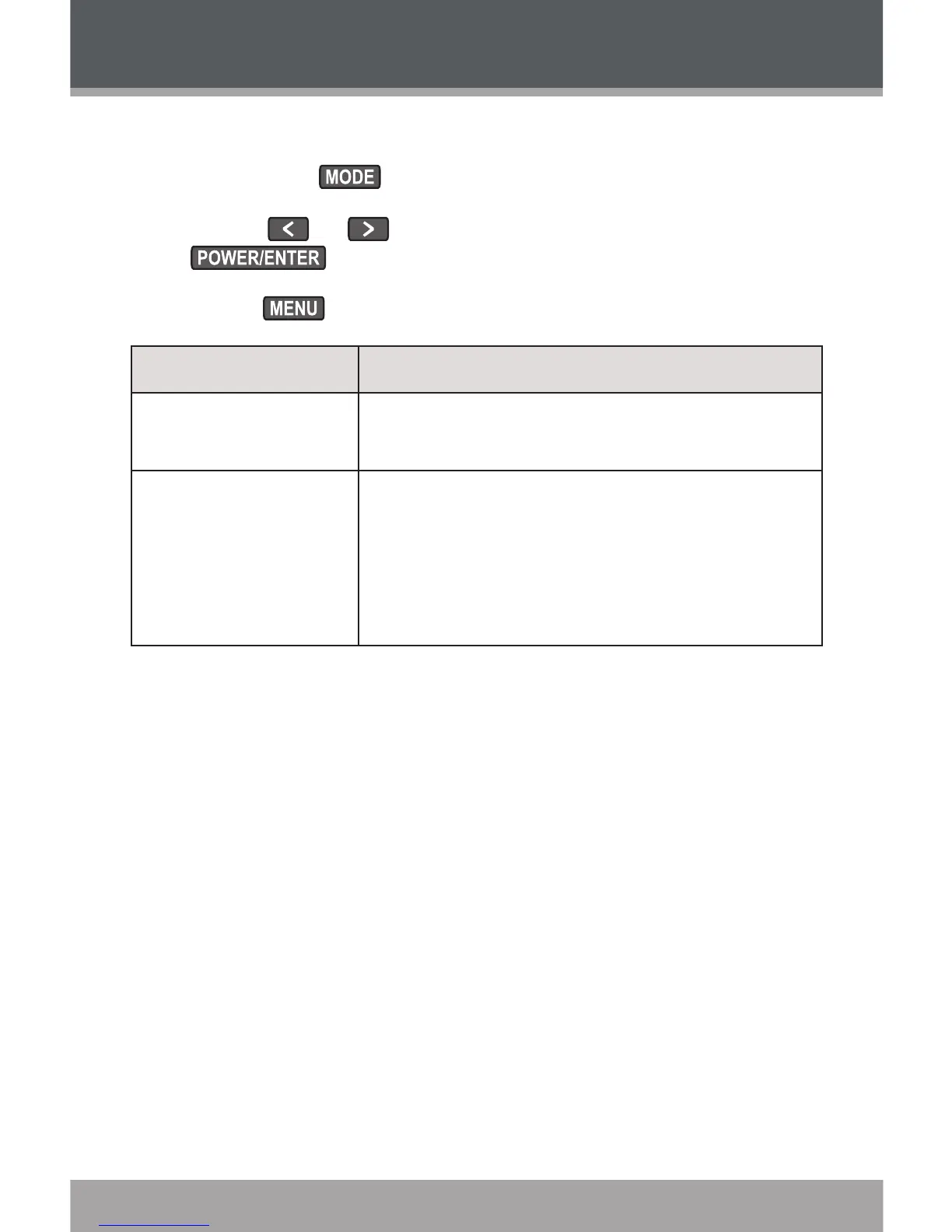Press or to select an option and press