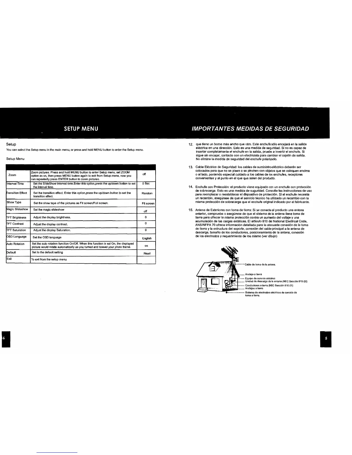 de los conductores, posicionamiento de la antena, conexi6n