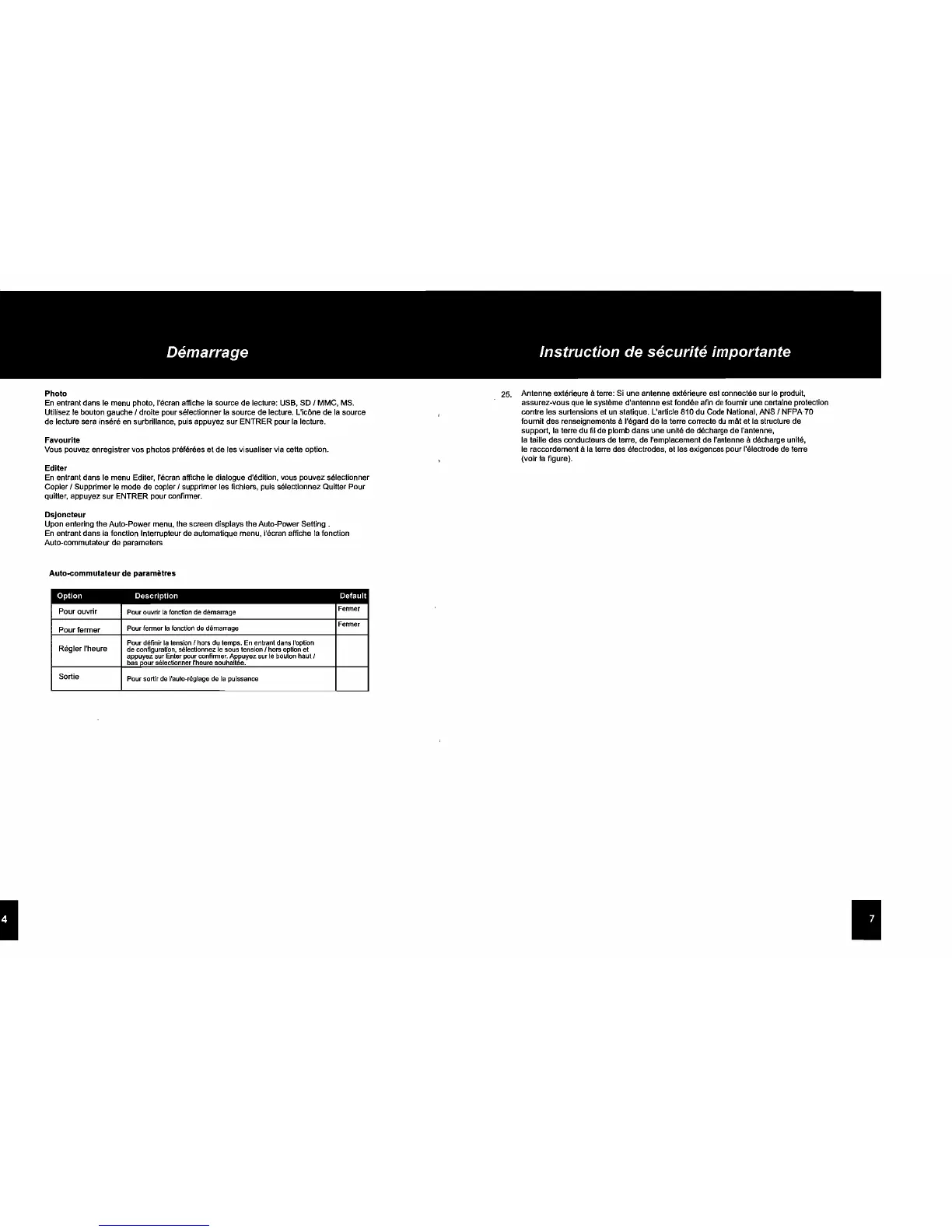 25. Antenne exterieure a terre: Si une antenne exlerieure est connectee sur