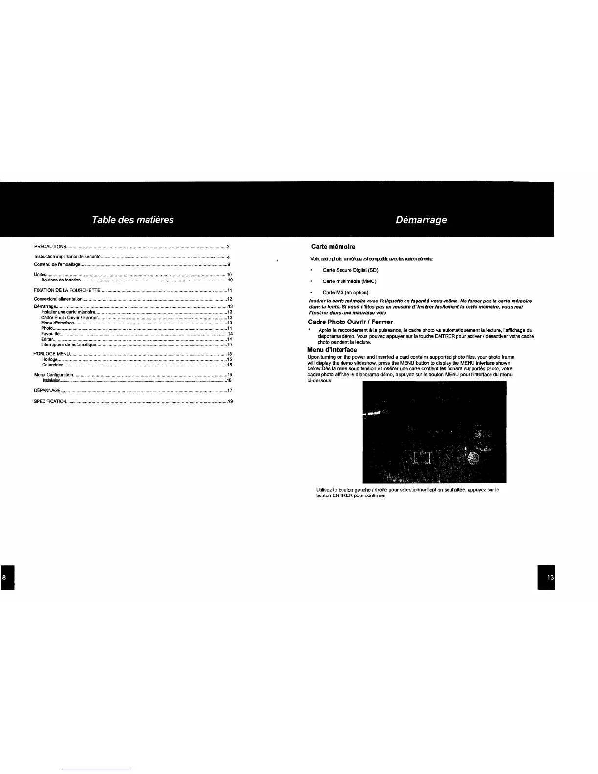 diaporama demo, appuyez sur