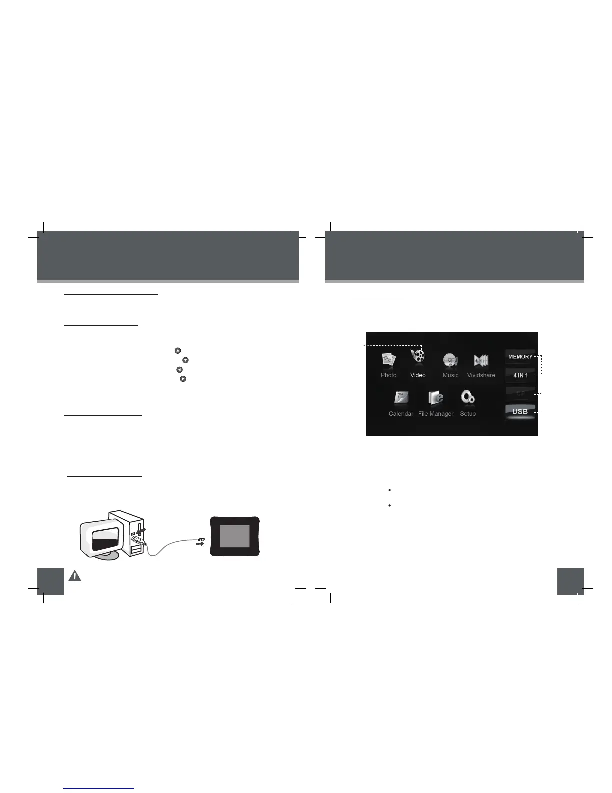 To select the different menu options and files of your digital photo frame: