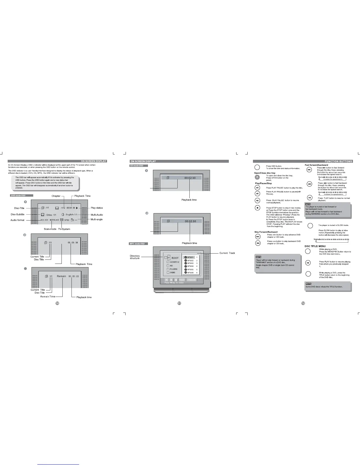Coby DVD-207 - On Screen Display; CD Mode-OSD; DVD Mode-OSD; MP3 Mode-OSD