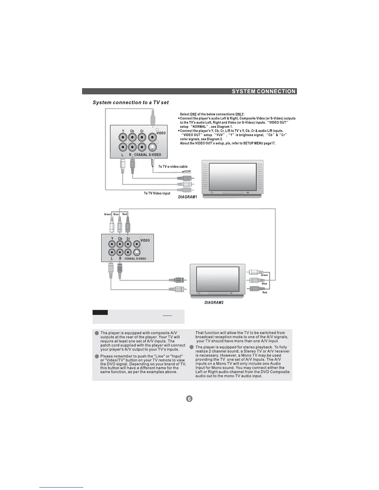 Coby DVD-224 - Connecting to a Television; Connecting to Television Set