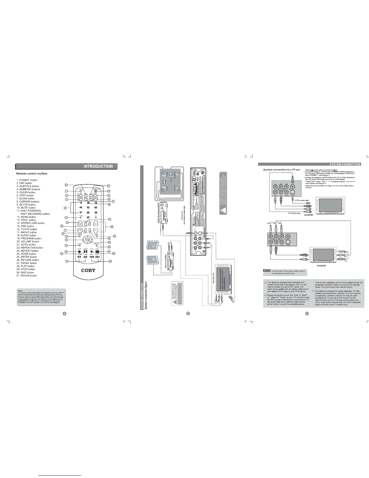 Coby DVD-227 - Remote Control; System Connection to a TV Set