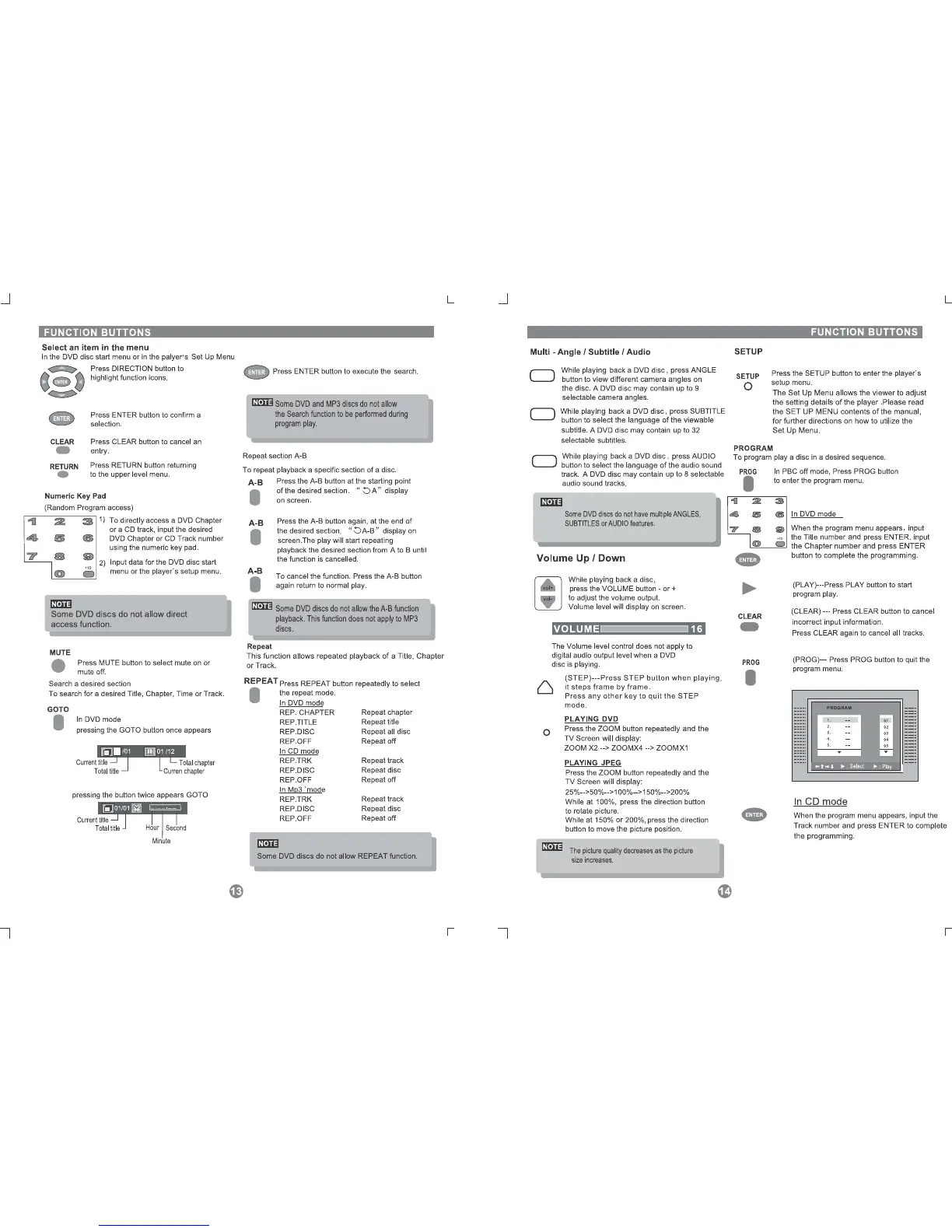 Coby DVD-227 - Select an Item in the Menu; Setup; Multi - Angle;Subtitle;Audio; Volume Up;Down