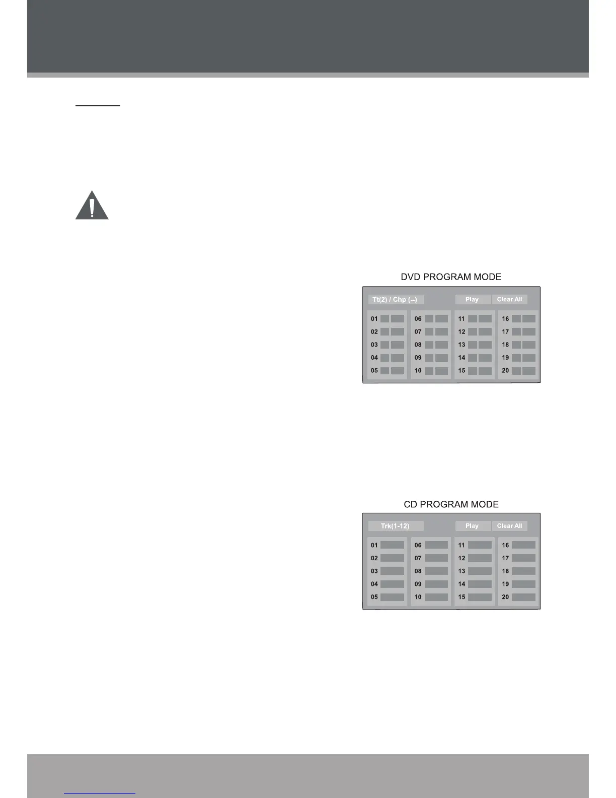 To create a custom sequence of tracks to be played, press PRG to enter Program Mode.