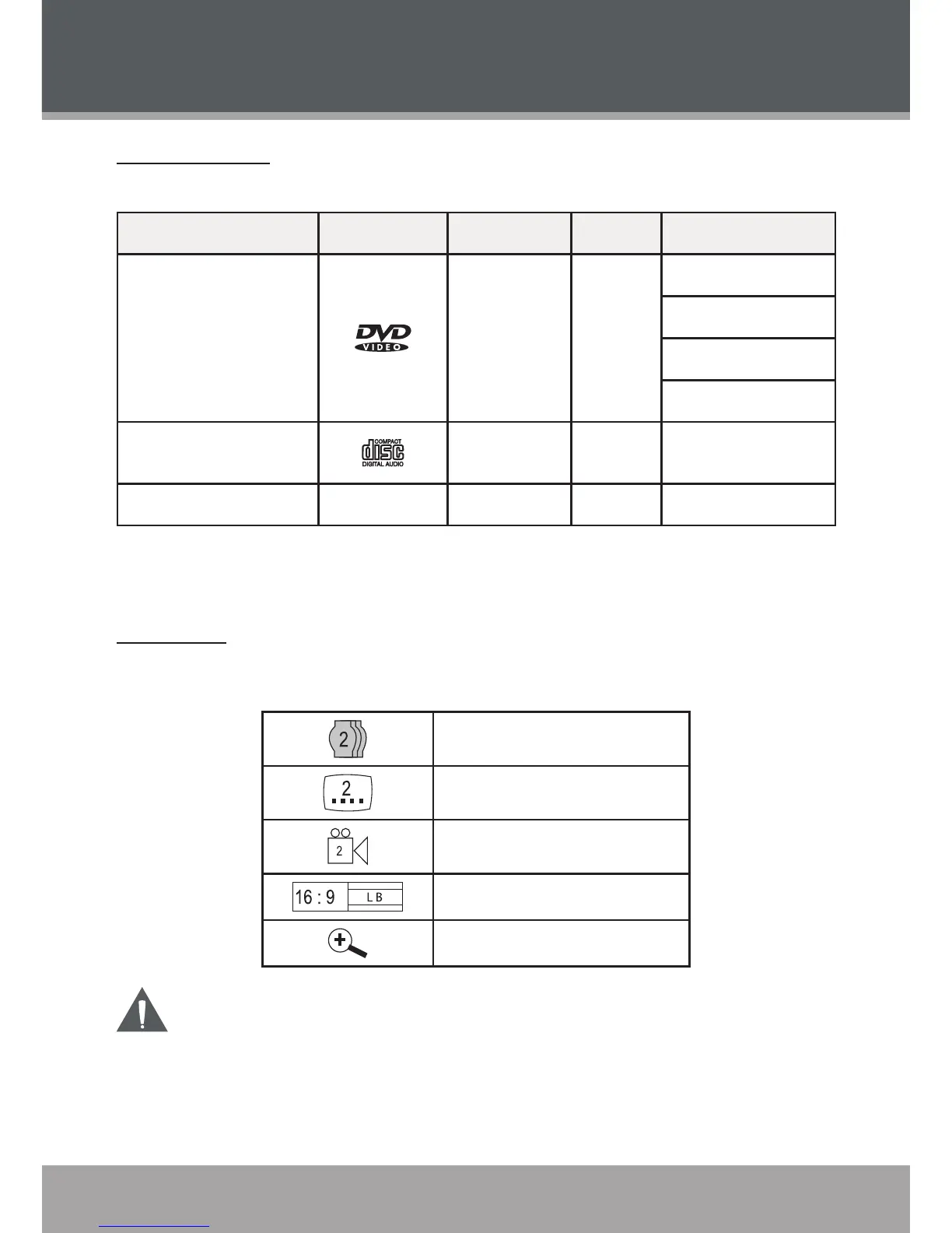 This DVD player supports playback of the following discs.